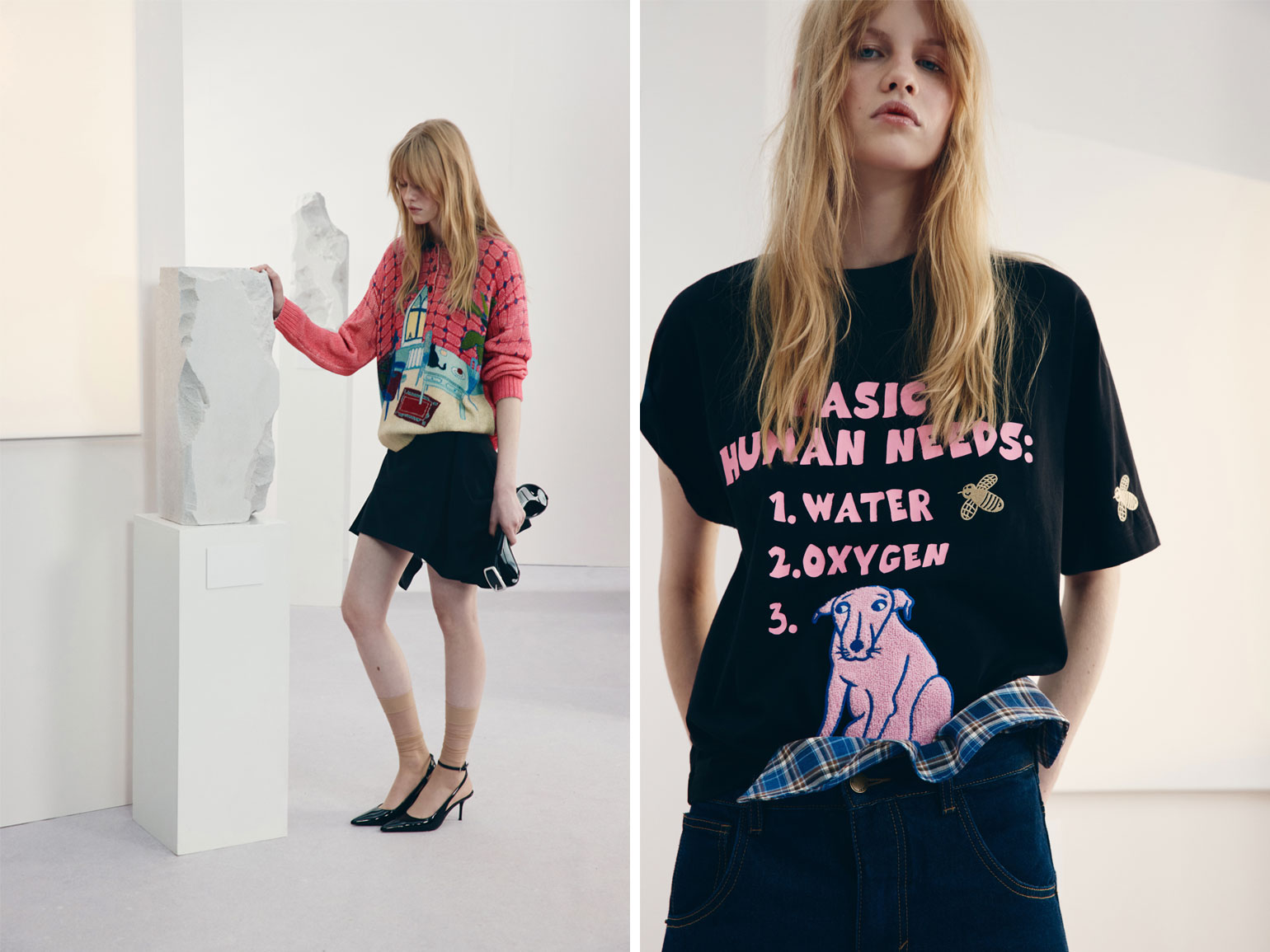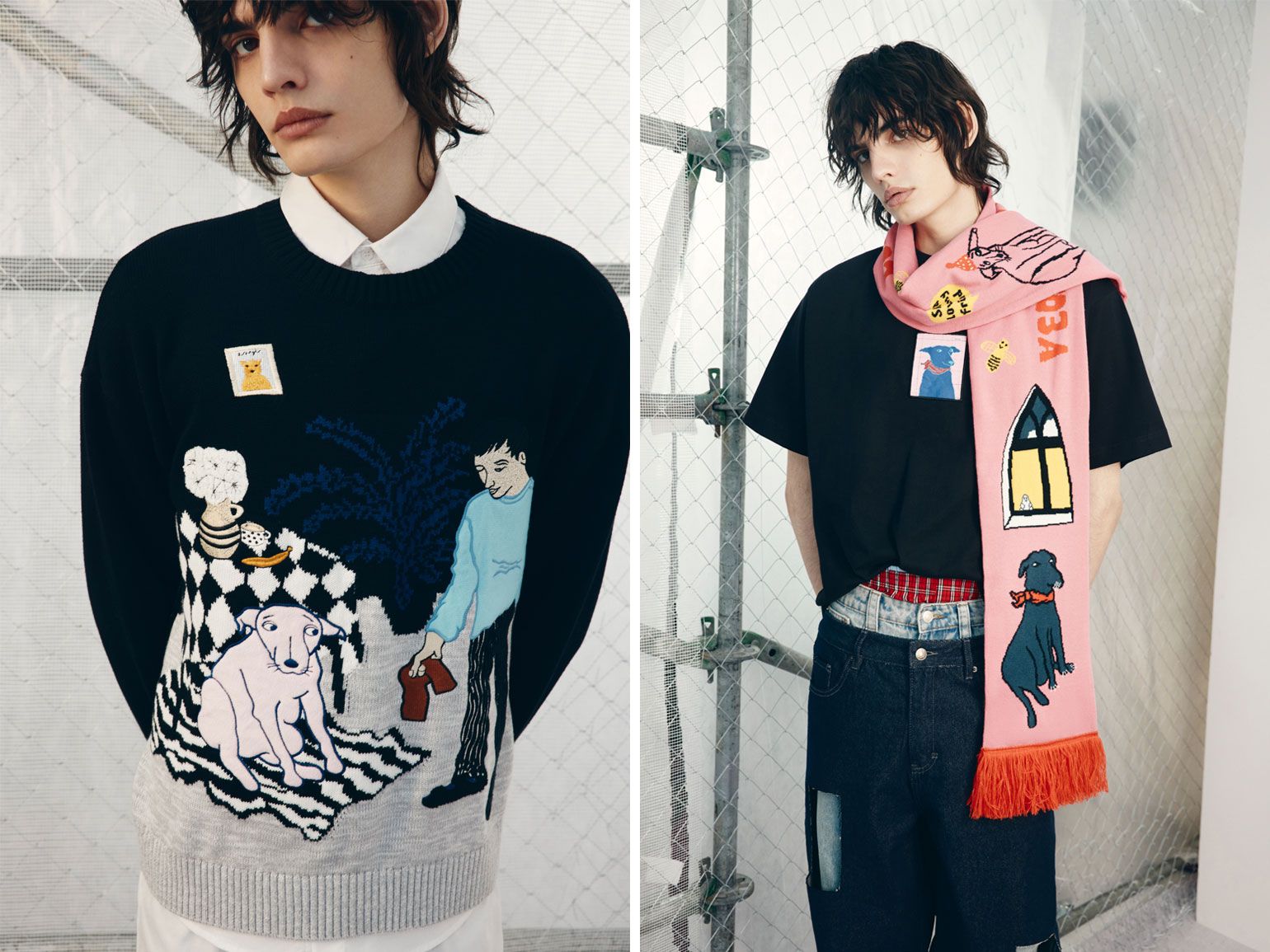 Дизайнеры бренда поселили персонажей художника на вязаных вещах, дополнив их тактильными элементами — объёмной вышивкой, пушистой вязкой и бахромой. Принты сопровождают фразы, написанные Данилом Дэге, например: «Если балуешься — балуйся профессионально» и «Главное — оставайся человеком». Последнюю, по словам художника, часто повторяла его бабушка — и этот посыл он передаёт и в совместной коллекции.