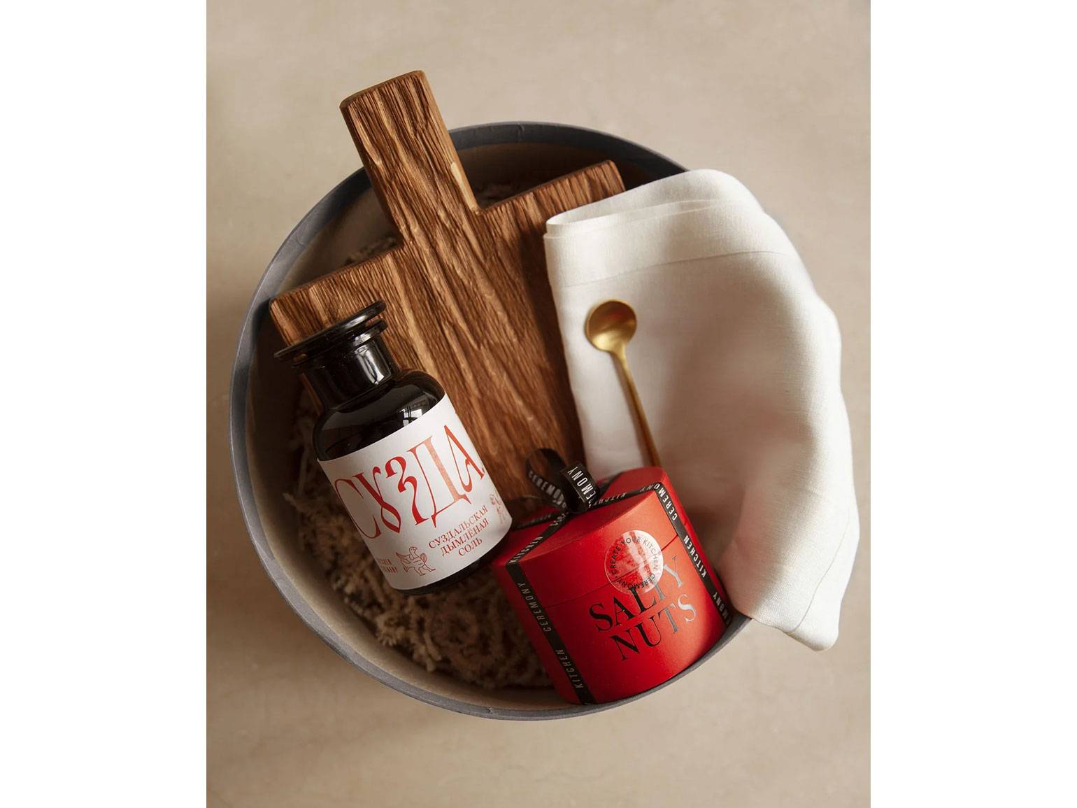 Специи из редких ингредиентов, привезённые из разных уголков мира, в бутылочках ультрафиолетового стекла Miron Violet Glass не станешь покупать сам себе каждый день, но определённо будешь счастлив получить в подарок — это как нишевый парфюм. На сайте есть подарочные боксы: за «Суздальским» придётся поохотиться, а Ceremony Box Black с чёрной доской Woodeez, льняным полотенцем, ложкой ручной работы и кедровой шишкой можно купить прямо сейчас.