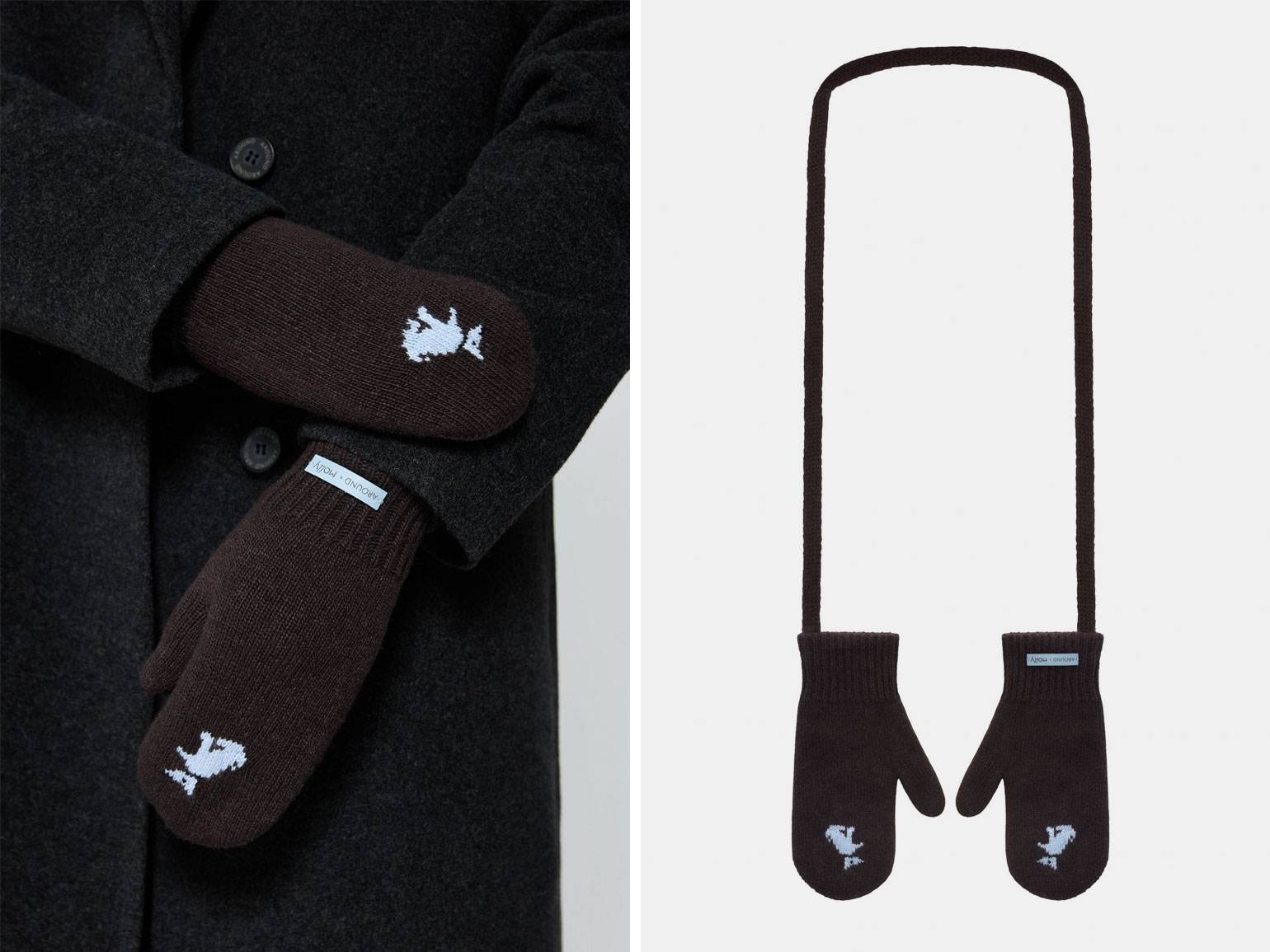 Бренд трикотажной одежды из Екатеринбурга Around появился, когда основательница, Женя Кузьмина, стала искать простую и качественную трикотажную шапку, а история бренда Molly началась с лабрадора по имени Молли, для которого создательница решила сделать лучшие ошейник, поводок и лежанку. Так что эти варежки делали как для себя: на завязке, как в детстве, чтобы не потерять, и с собачкой — напоминание о щемящем советском мультике.