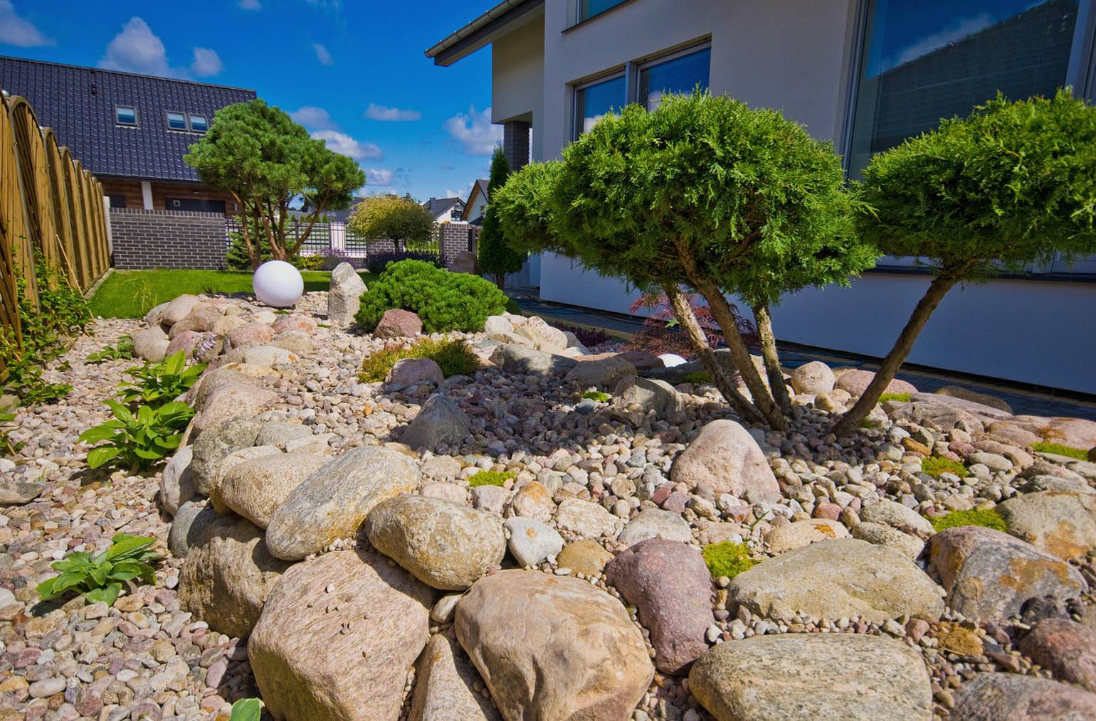 - Гранит: вариант для самых разных задач, поскольку у гранита множество оттенков, а также он обладает высокой прочностью. Единственный минус — это его особенность, он подкисляет почву и не всем растениям подходит. Однако гранит идеален для рододендронов, азалий и хвойных.