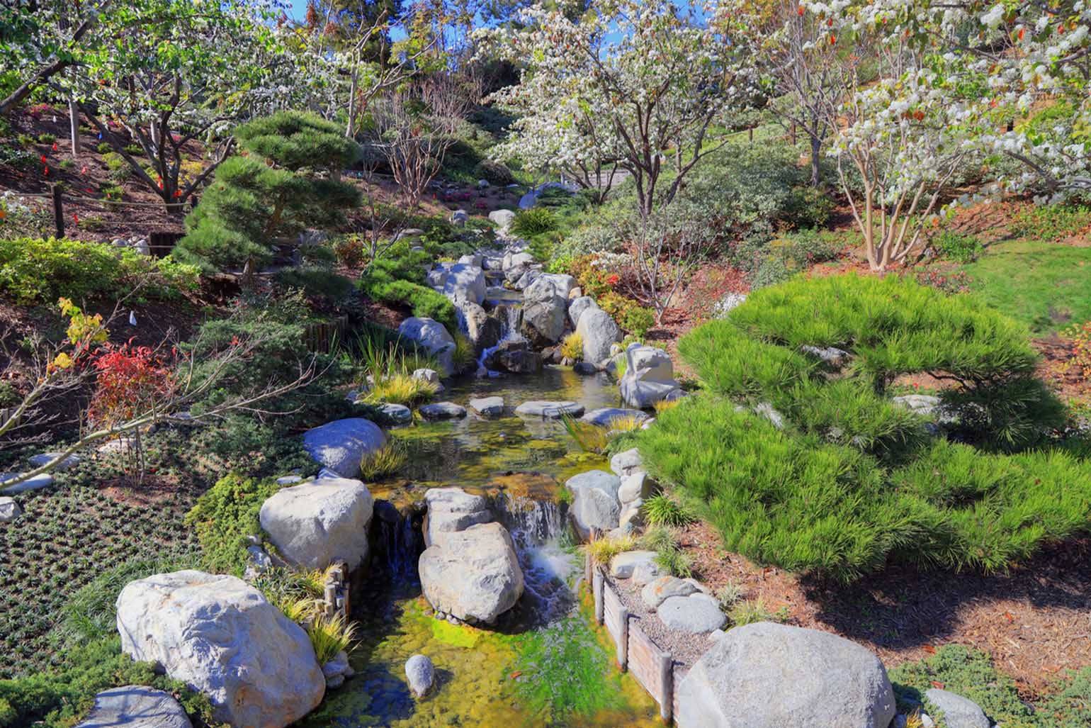 - Японский рокарий — это лаконичный и минималистичный сад в пастельных тонах, где гладкие валуны занимают большую часть пространства, а растения служат лишь акцентами. Композиция чаще симметрична с волнистыми линиями из гравия или песка, дополняется декором в виде фонарей или статуэток.