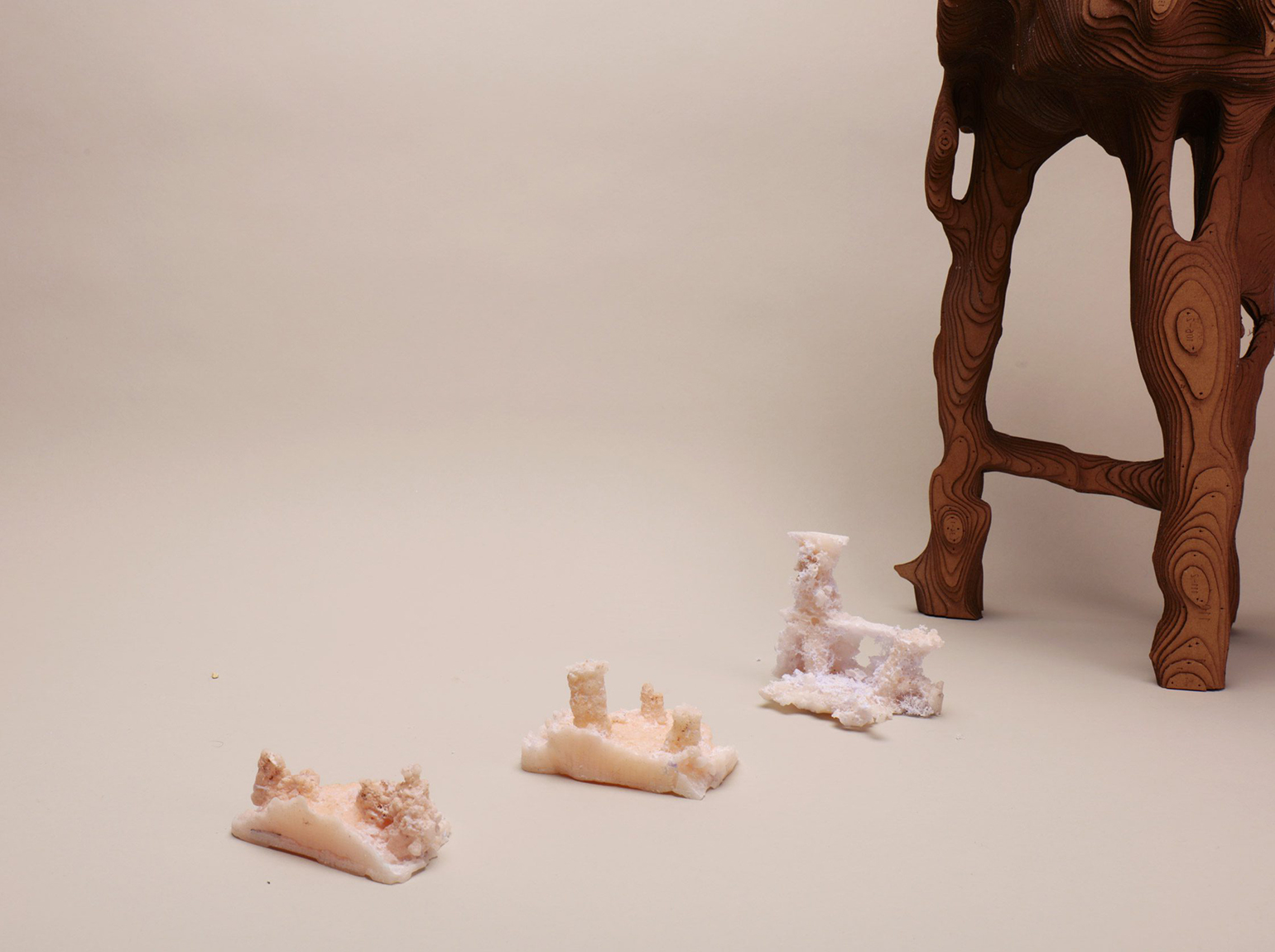 Чтобы точно получился стул, дизайнер ввёл в блоки полистирола сахарные дорожки. Именно их сначала и прогрызли насекомые. А после этого Уильям Элиот дал личинкам свободу, чтобы они могли двигаться в любом направлении.