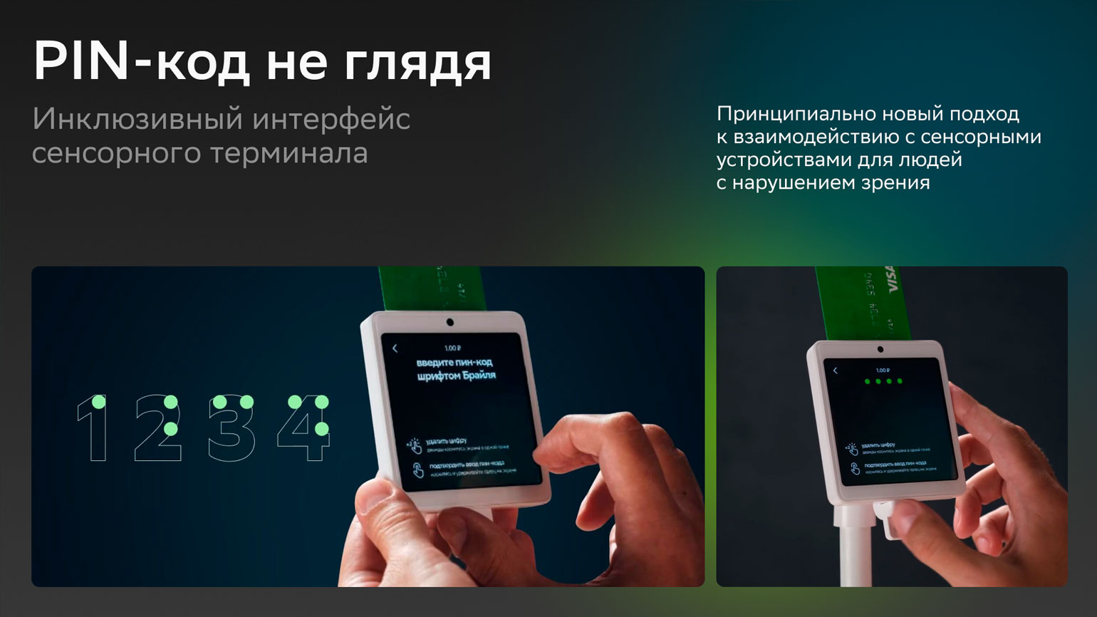 «Дизайн с опережением. Награда Mish», —PIN-код не глядя: инклюзивный интерфейс сенсорного терминала, участник — «Сбер».