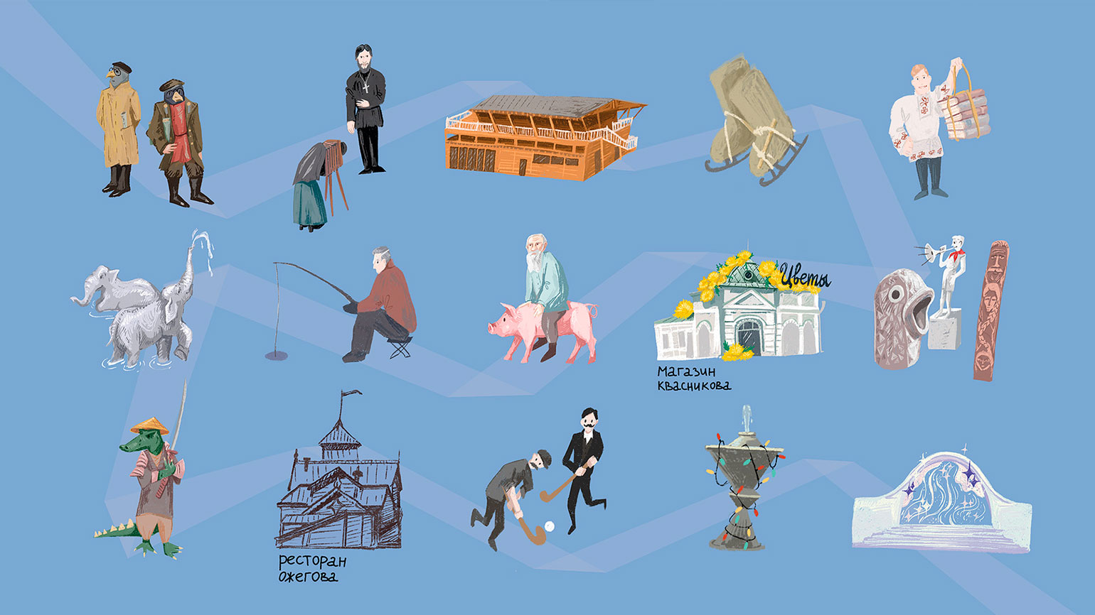 Золото. Иллюстрации для краеведческого проекта «Околотки на перемотке», участник — креативное агентство 500NA700.
