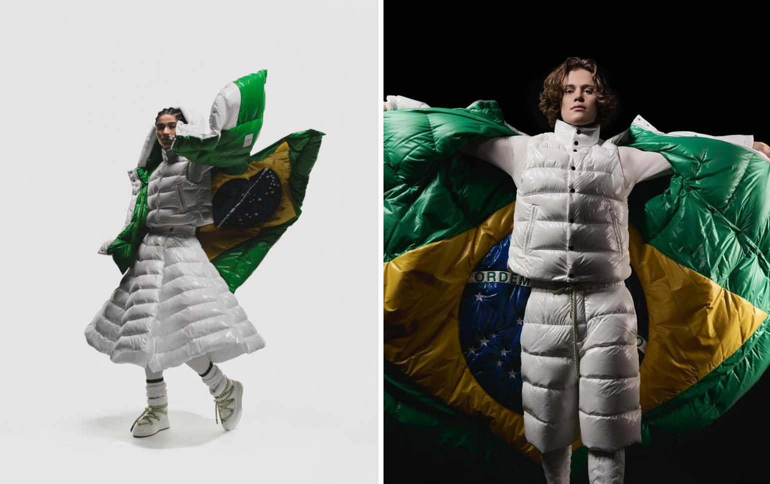 Бразилия сочетает Moncler, Adidas и Avec Sport: белые зимние жакеты с ремнями, тёмно-зелёная одежда с желтыми и белыми акцентами.