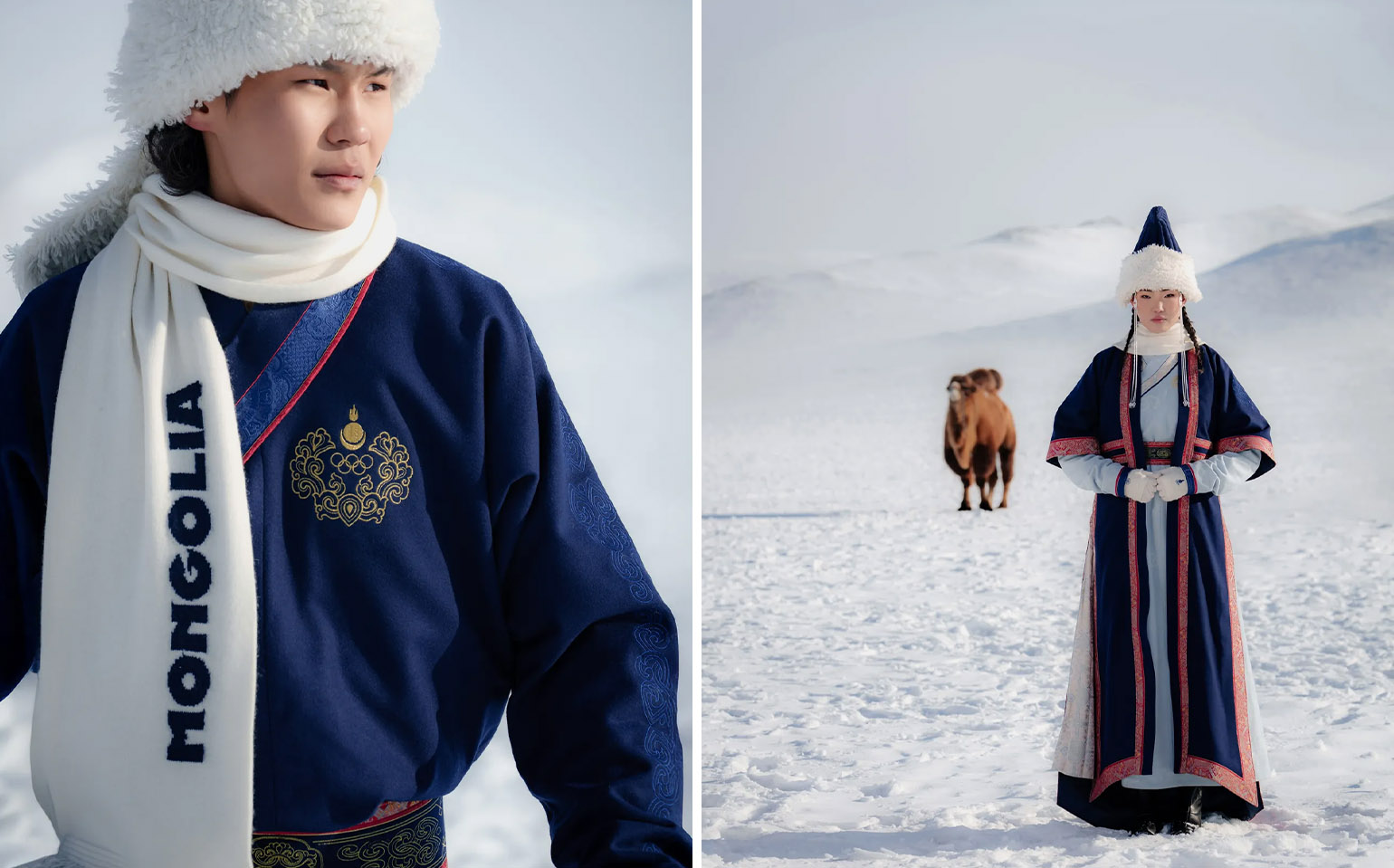 Монголия продолжает традицию модернизированных национальных костюмов с использованием кашемира и национальных мотивов, связанных с Великой Монголией.