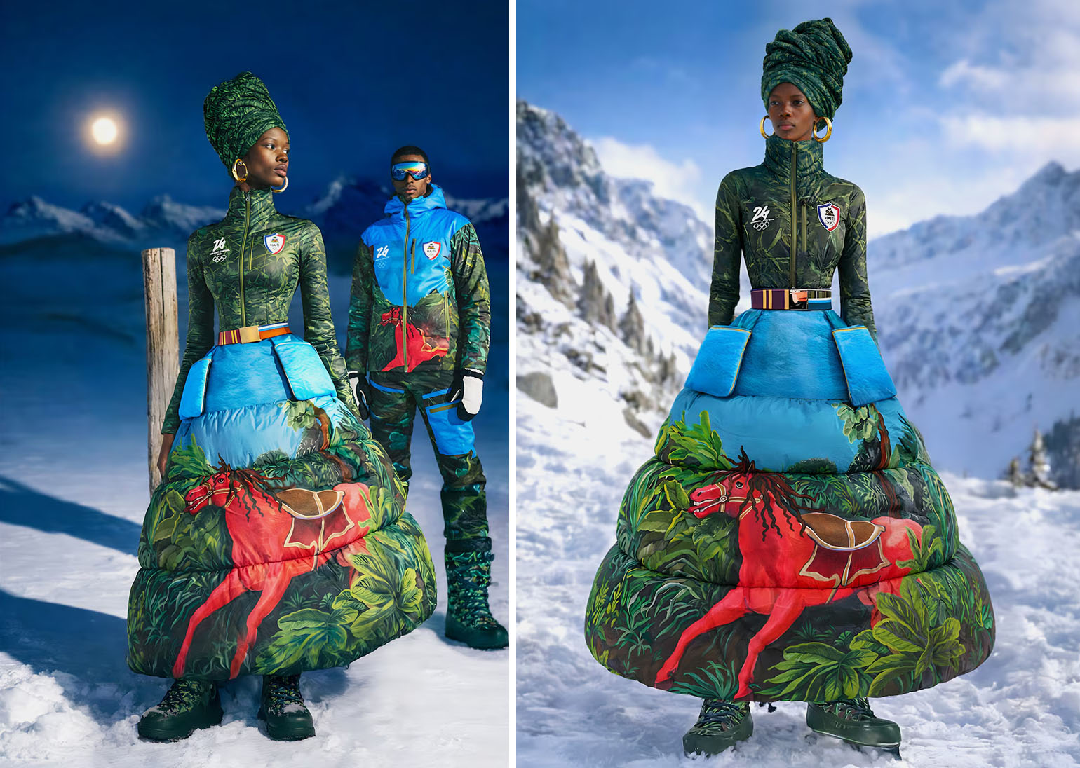 Некоторые страны используют форму для рассказа истории. Гаити представила форму от итальянско-гаитянского дизайнера Стеллы Жан: зелёные оттенки природы, красный всадник без лошади — символ духа страны. Женская форма включает пуховую юбку и традиционный головной убор «тигон».