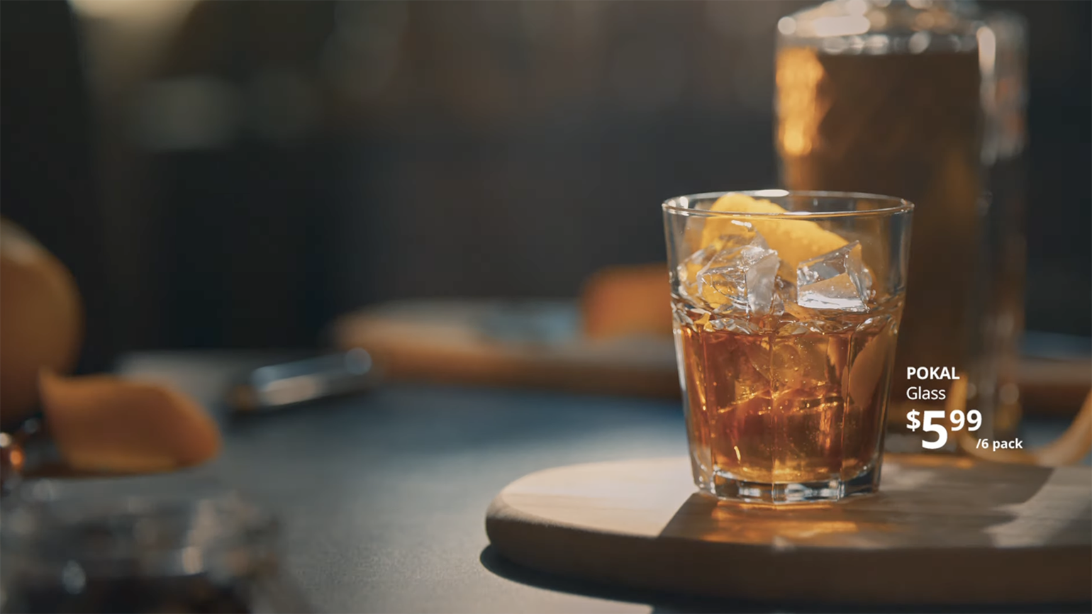 Во втором ролике схема примерно такая же: это пародия на фешен-рекламу, в которой модель принимает странные позы со стулом. В конце выясняется, что он стоит 45 долларов. Третий ролик отсылает к рекламе дорогого алкоголя, но на деле показывает бокал Pokal за 5,99 доллара.