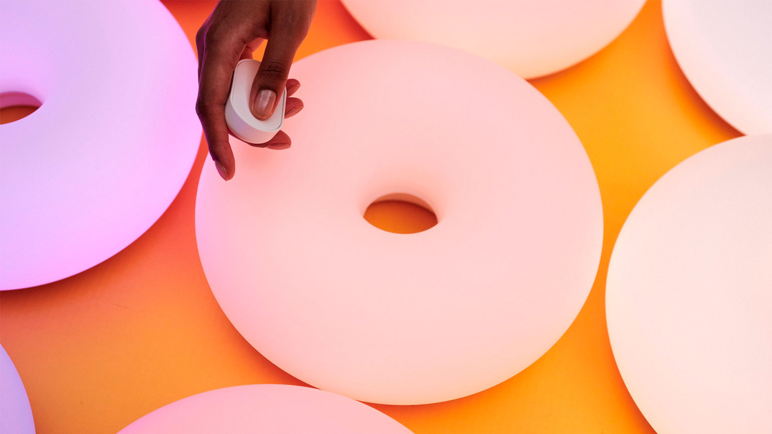 Кроме «пончика», IKEA также показала умную подвесную лампу из коллекции Varmblixt. Светильник состоит из группы изогнутых трубок и работает с оттенками белого света — от холодного до тёплого, «свечного». Он тоже управляется пультом.