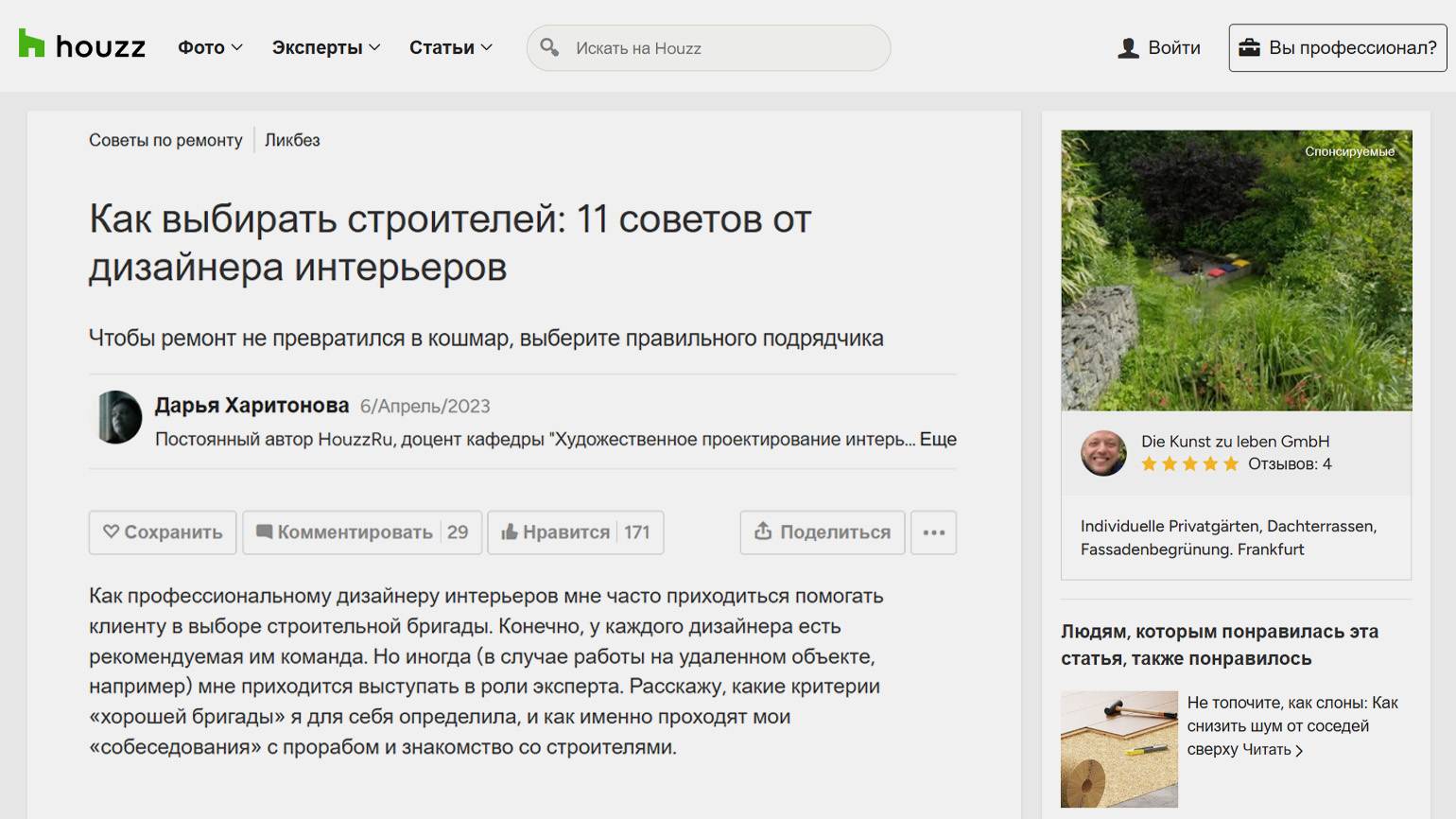 Например, у журналов InMyRoom и Houzz уже есть своя аудитория. Это делает их отличным инструментом для привлечения первых клиентов без необходимости тратить бюджет на рекламу.