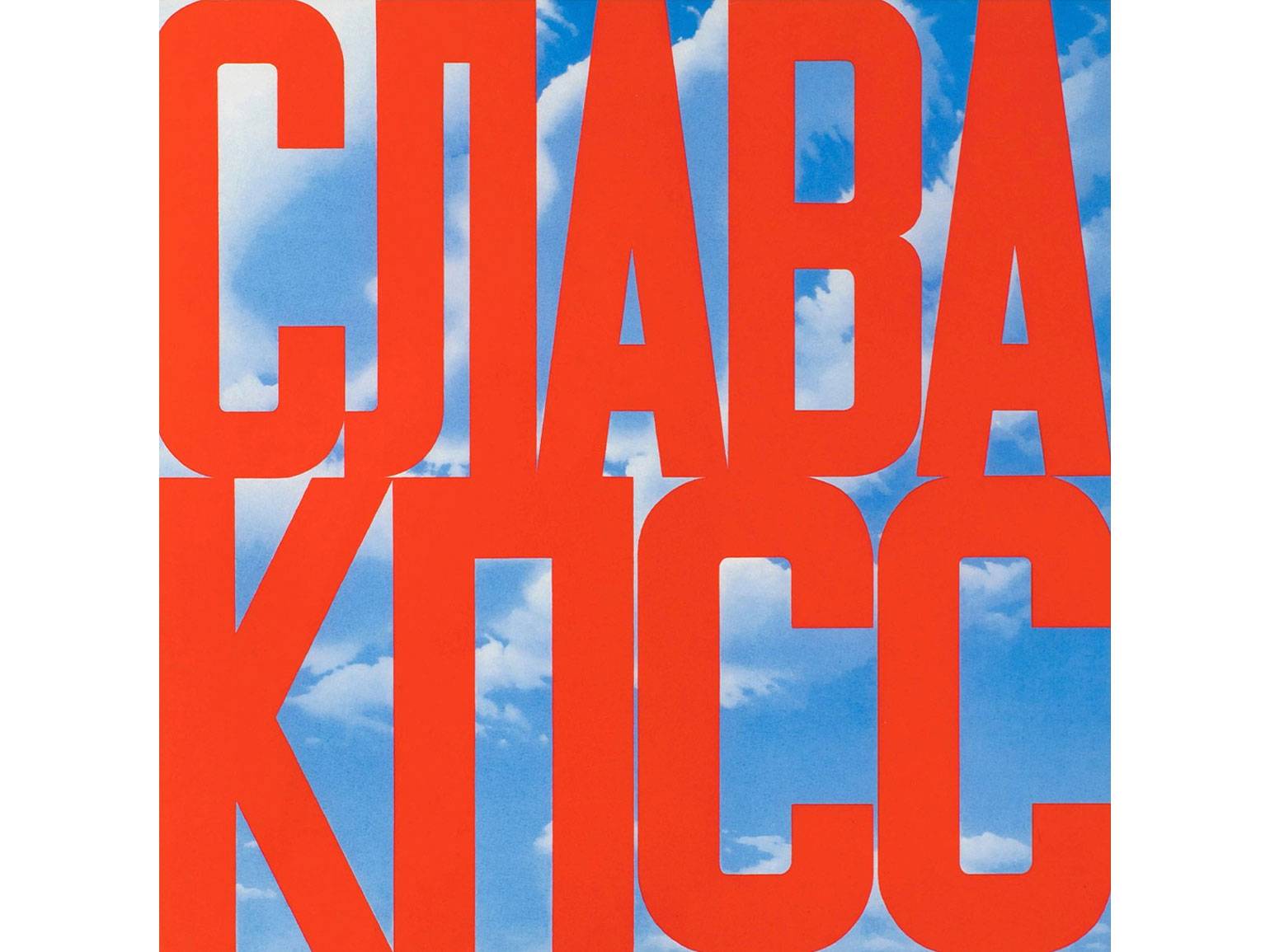 В живописи Булатова слово не бывает декоративным элементом. Оно не добавляется «поверх» изображения и не служит подписью или пояснением. Типографика у него предельно проста, почти обезличена: прямые, ровные буквы, лишённые стилистических эффектов.