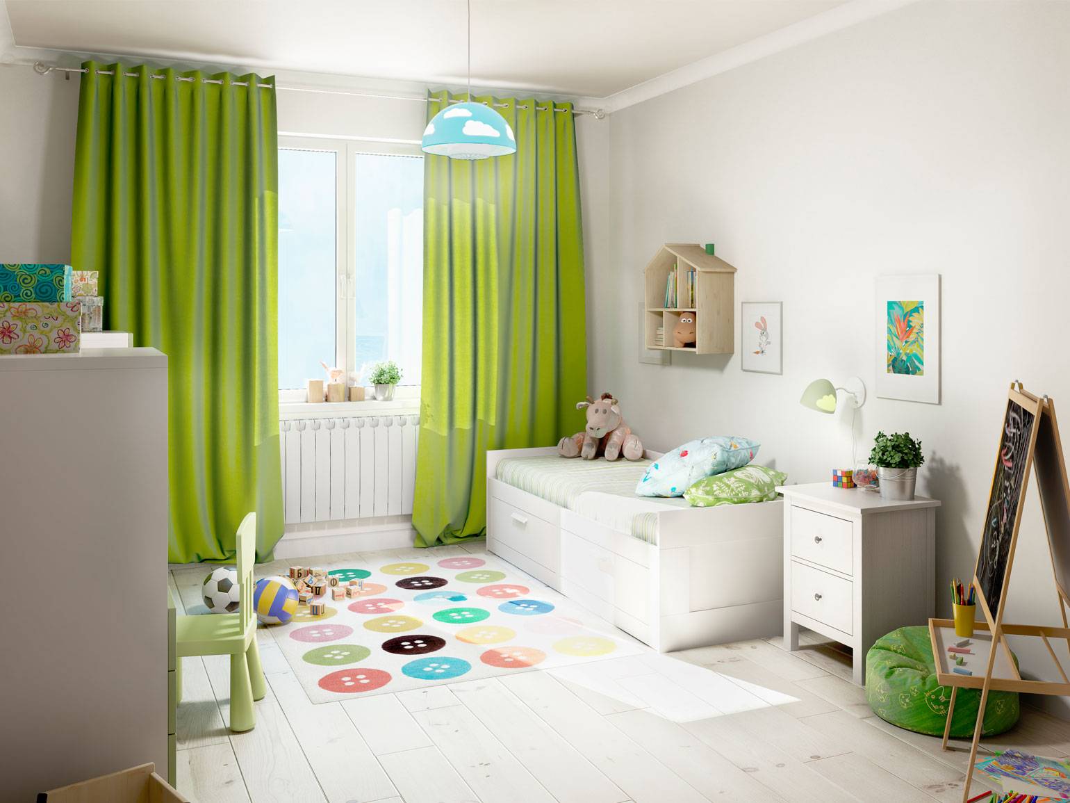 Здесь важно помнить правило 60–30–10, которое широко применяется в интерьерной композиции: 60% — должен занимать базовый цвет, 30% — поддерживающий, 10% — акцентный. Если шторы занимают значительную площадь, их цвет не должен быть случайным «десятипроцентным» акцентом без поддержки в других элементах.