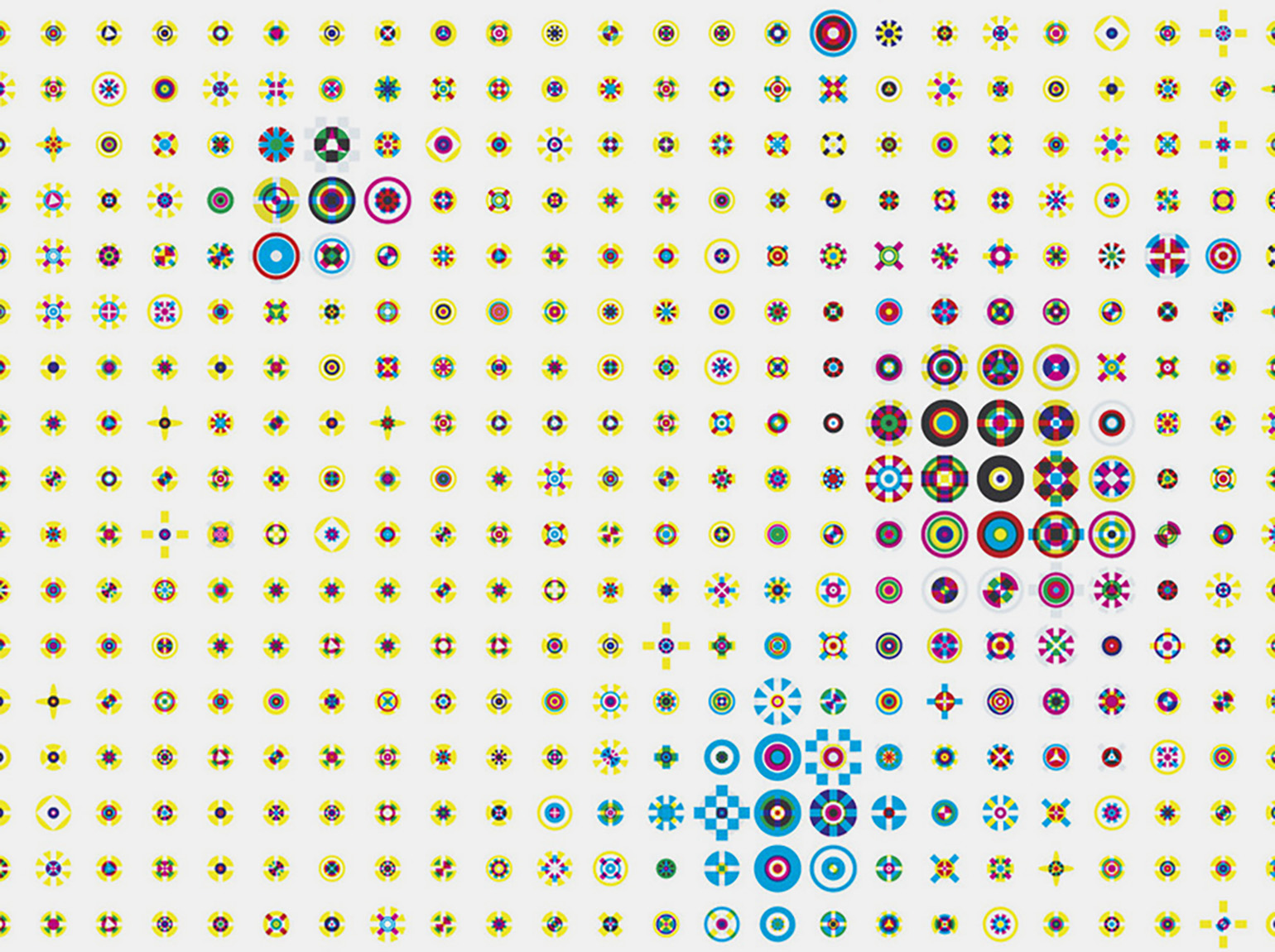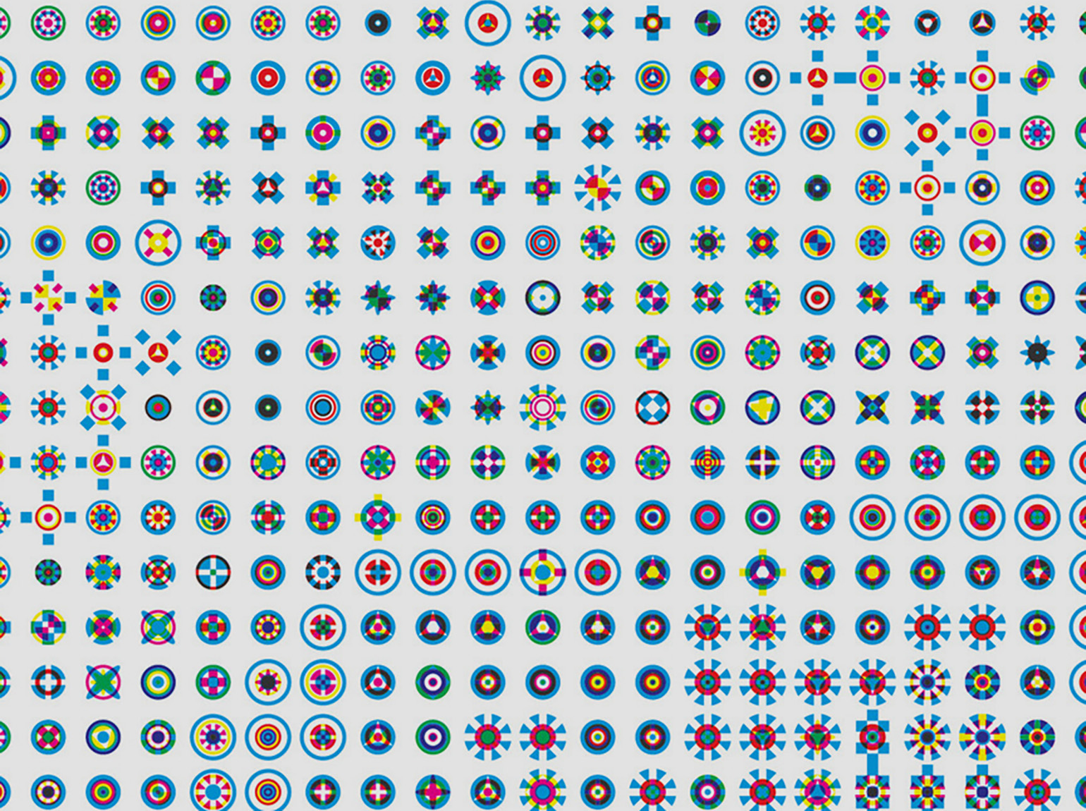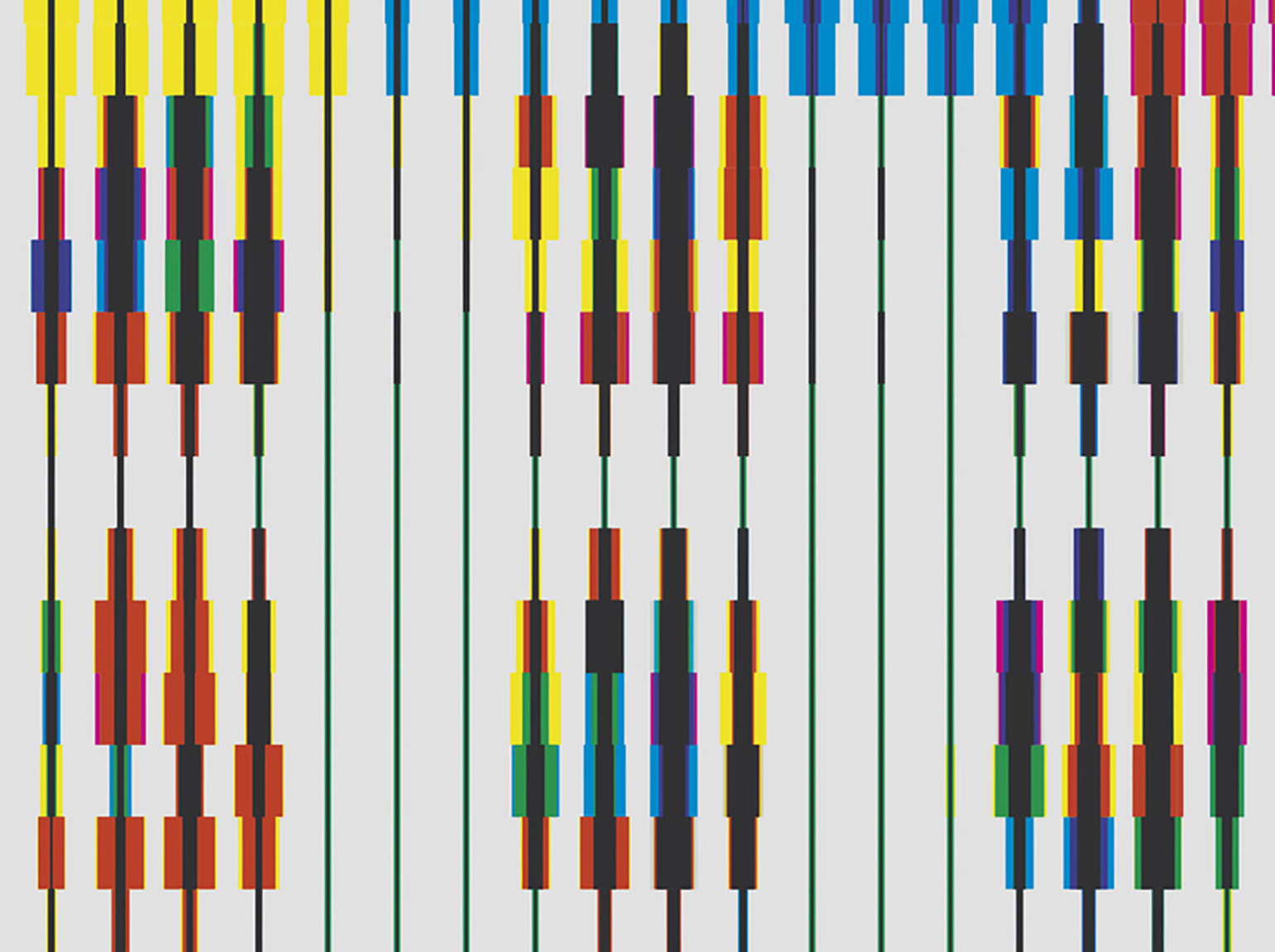 Цифровой принт Mixed ## создан на основе цветовой модели CMYK. Мартенс изобразил множество арабских цифр путём нанесения цветных полос разной плотности.