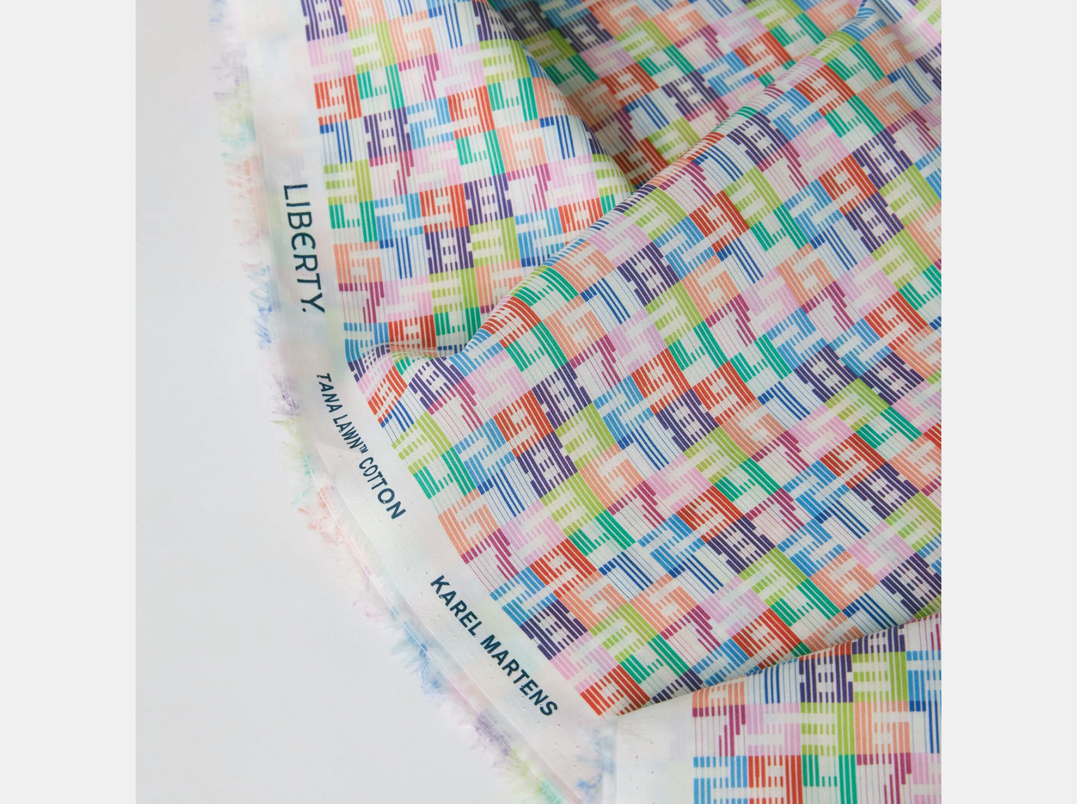 Для коллекции текстиля Liberty Fabrics SS24 Мартенс создал серию монотипий, которые были масштабированы, скомпонованы и перенесены на ткани под его руководством.