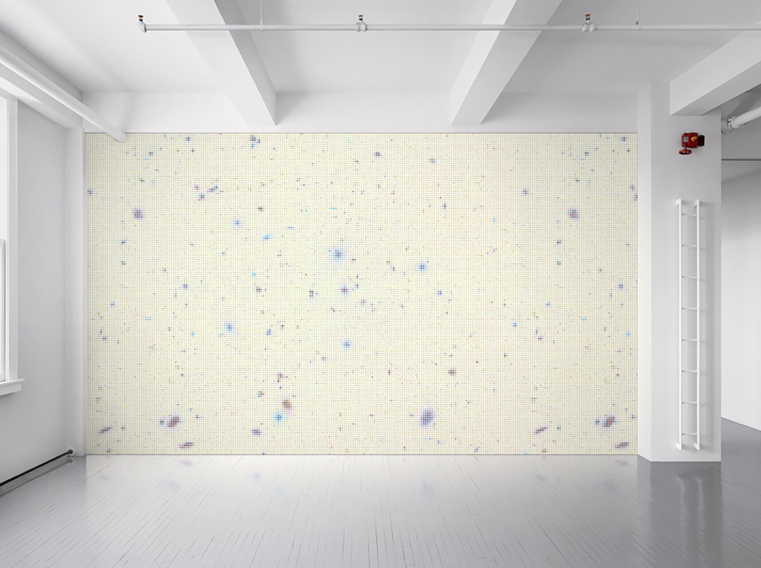 Для производителя тканей и настенных покрытий Мартенс создал серию арт-инсталляций из множества разноцветных иконок. С помощью мелких графических элементов дизайнер изобразил космос, пион и облака. Последняя композиция воссоздаёт фотографию неба в день рождения внука Карела.
