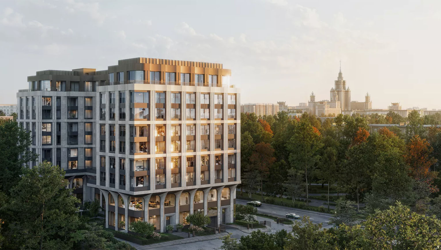 Это визуализация жилого дома премиум-класса Omega Residents, расположенного вблизи Воробьёвых гор