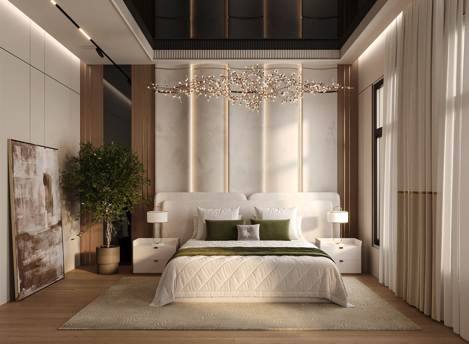 Интерьерная визуализация спальни в классическом американском стиле
