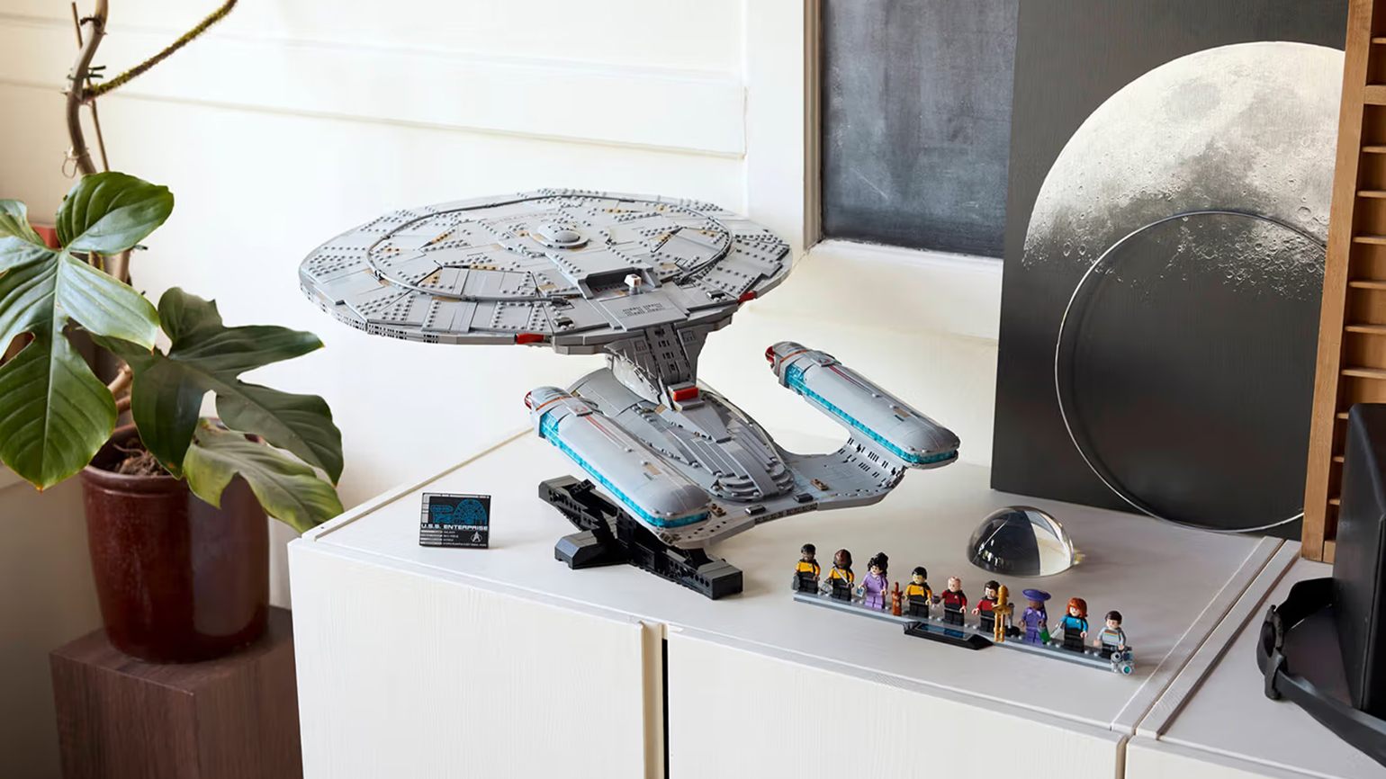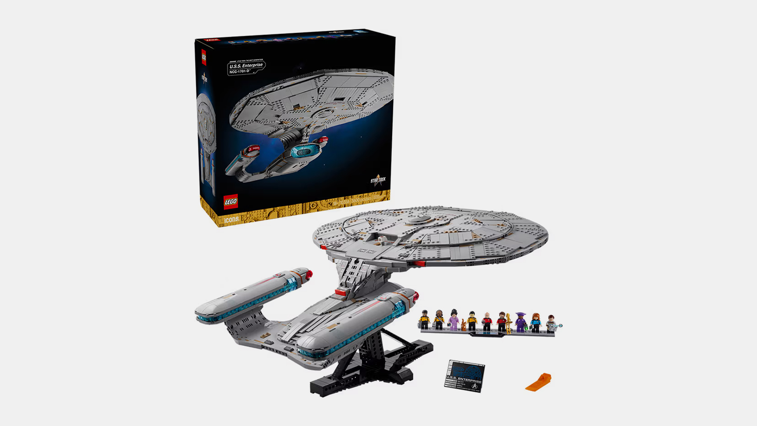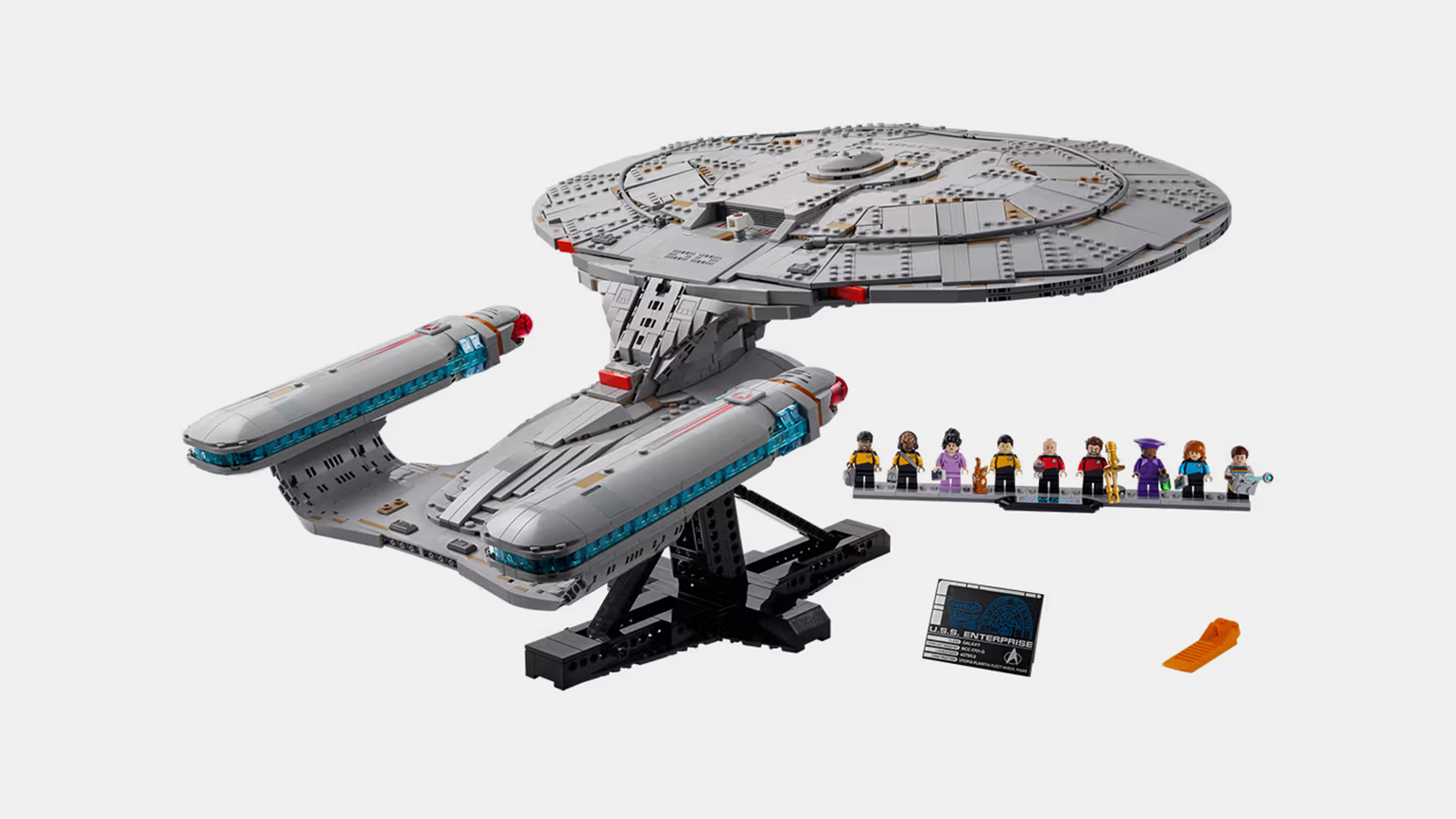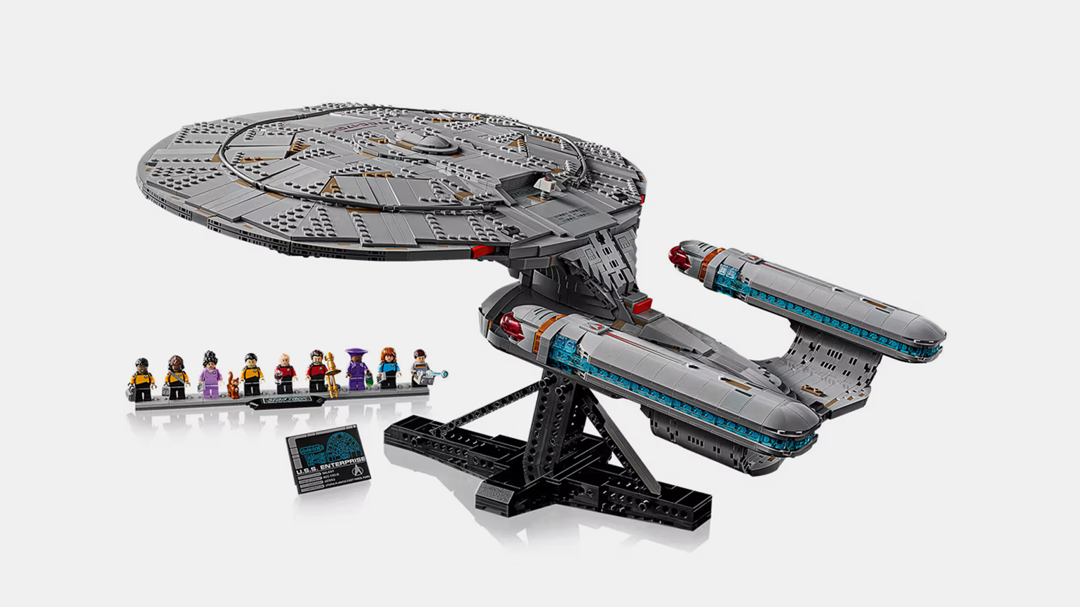Модель называется U.S.S. Enterprise, она включает съёмный диспетчерский пункт, открывающиеся ангары для шаттлов, наклонную демонстрационную подставку и девять мини-фигурок из Star Trek: The Next Generation — Пикарда (с чашкой чая), Райкера (с тромбоном), Дейта (со Спотом), Ворфа, Беверли Крашер, Жорди Ла Форг (с чемоданчиком инженера), Диану Трой, Гуинана (с бутылкой) и Уэсли Крашер (с портативным лучом).