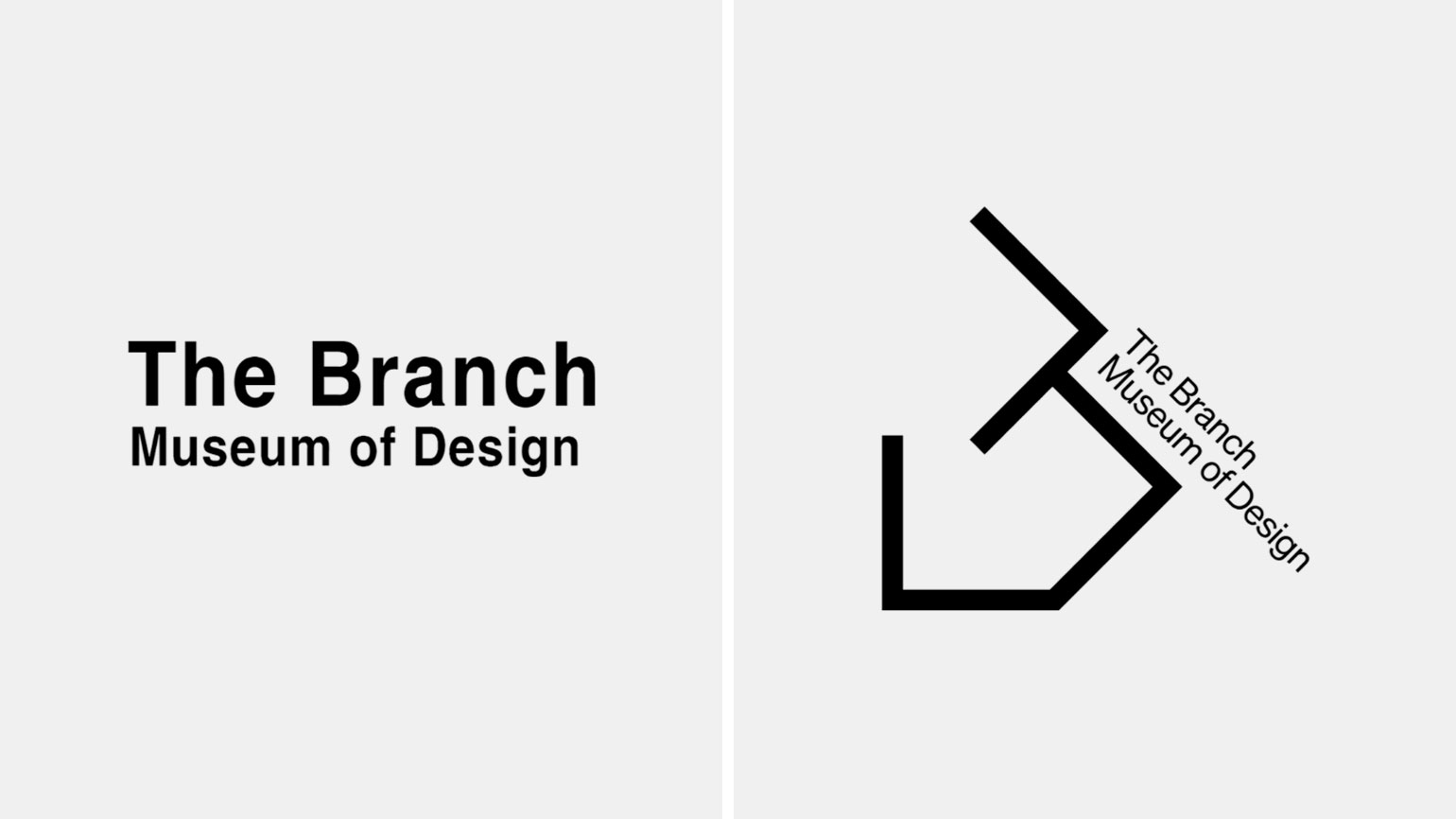Главный элемент айдентики — логотип в виде скульптурной буквы B, собранной из трёх-двускатных крыш. Если перевернуть символ, он превращается в дом — отсылка к самому зданию музея. Такая игра форм отражает новый девиз Branch: Where Perspectives Shift («Где меняются перспективы»).