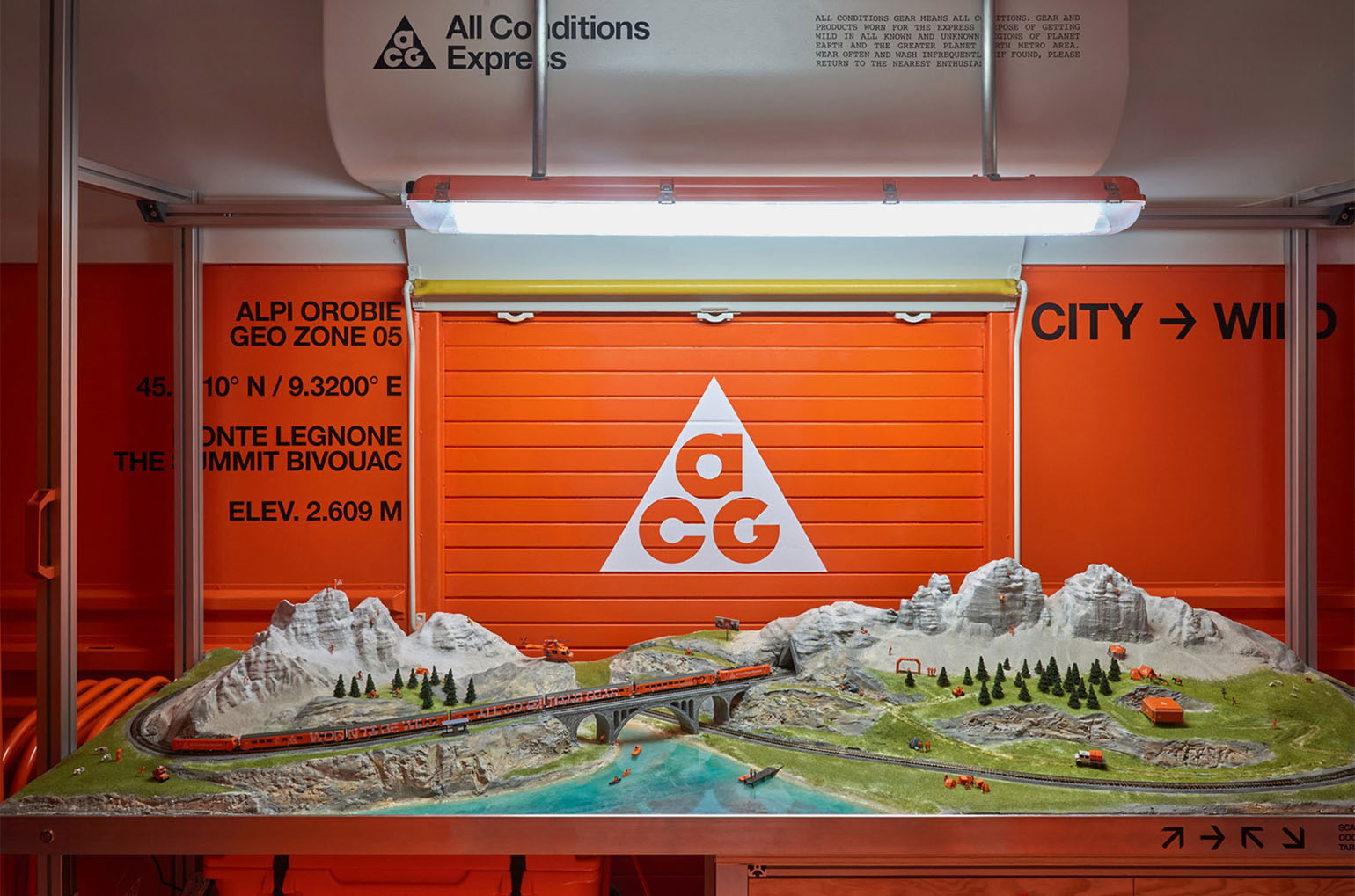 К зимним Олимпийским играм в Милане и Кортина-д’Ампеццо Nike представил инсталляцию — полностью брендированный поезд All Conditions Express, посвящённый перезапуску линейки All Conditions Gear (ACG).