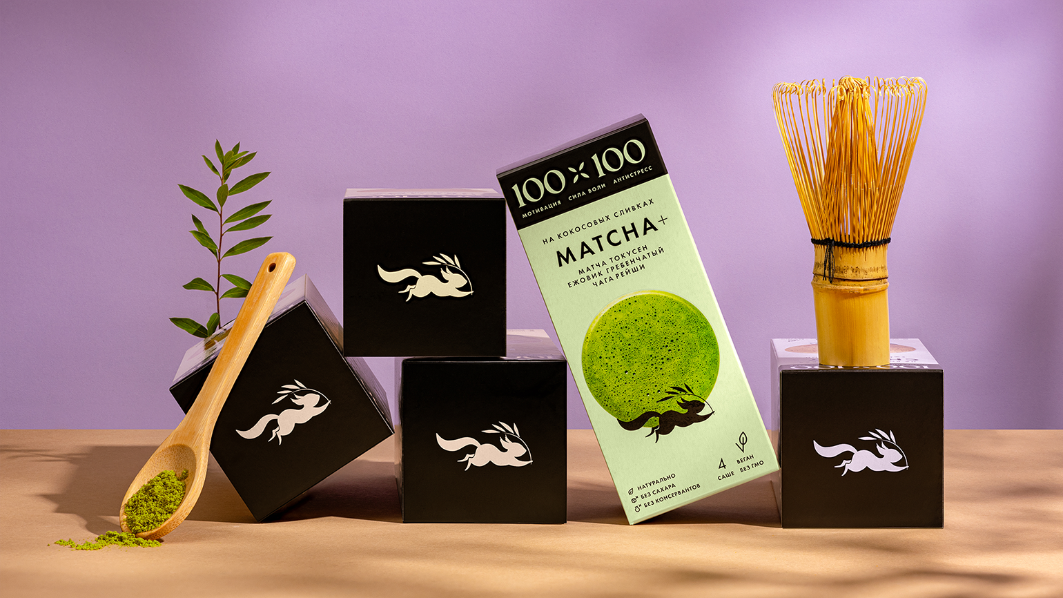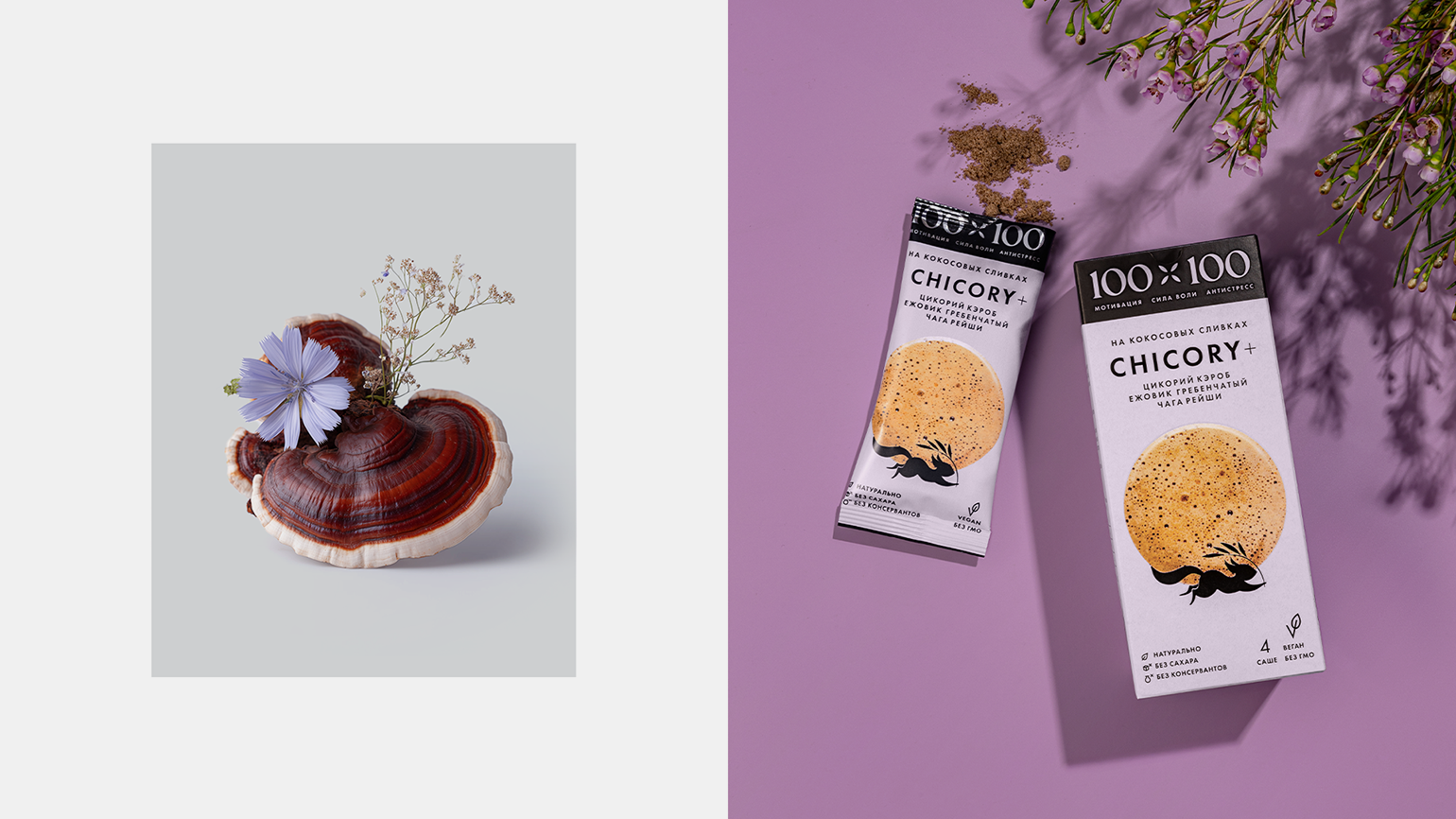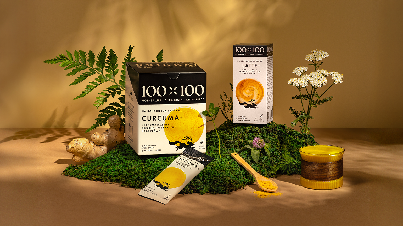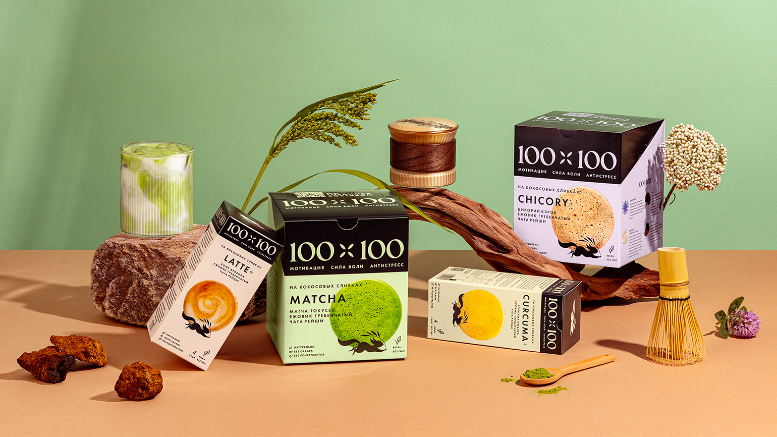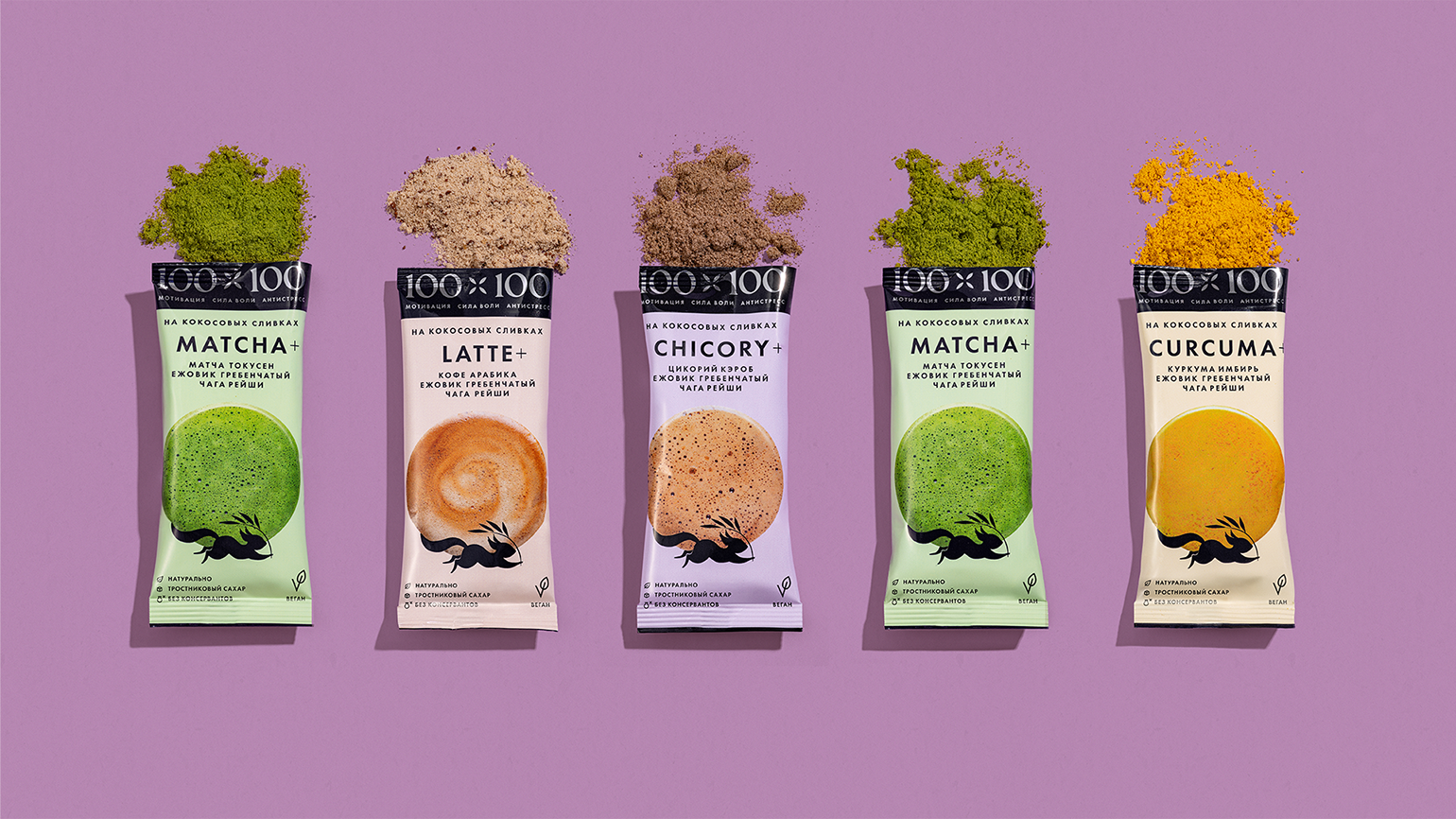 Агентство Ohmybrand разработало дизайн упаковки и визуальный образ для линейки растворимых напитков «Сто на сто». Бренд ориентирован на аудиторию, которой интересны здоровый образ жизни и функциональное питание.