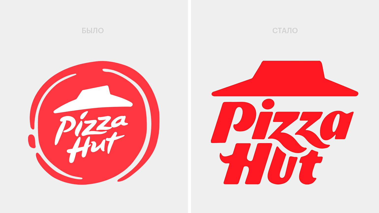 В отличие от предыдущей версии, где красная шляпа сочеталась с чёрными буквами, обновлённый вариант выполнен полностью в красном. Буквы Z в слове Pizza теперь срезаны под наклоном вниз к слову Hut, создавая более плотный и динамичный вид.