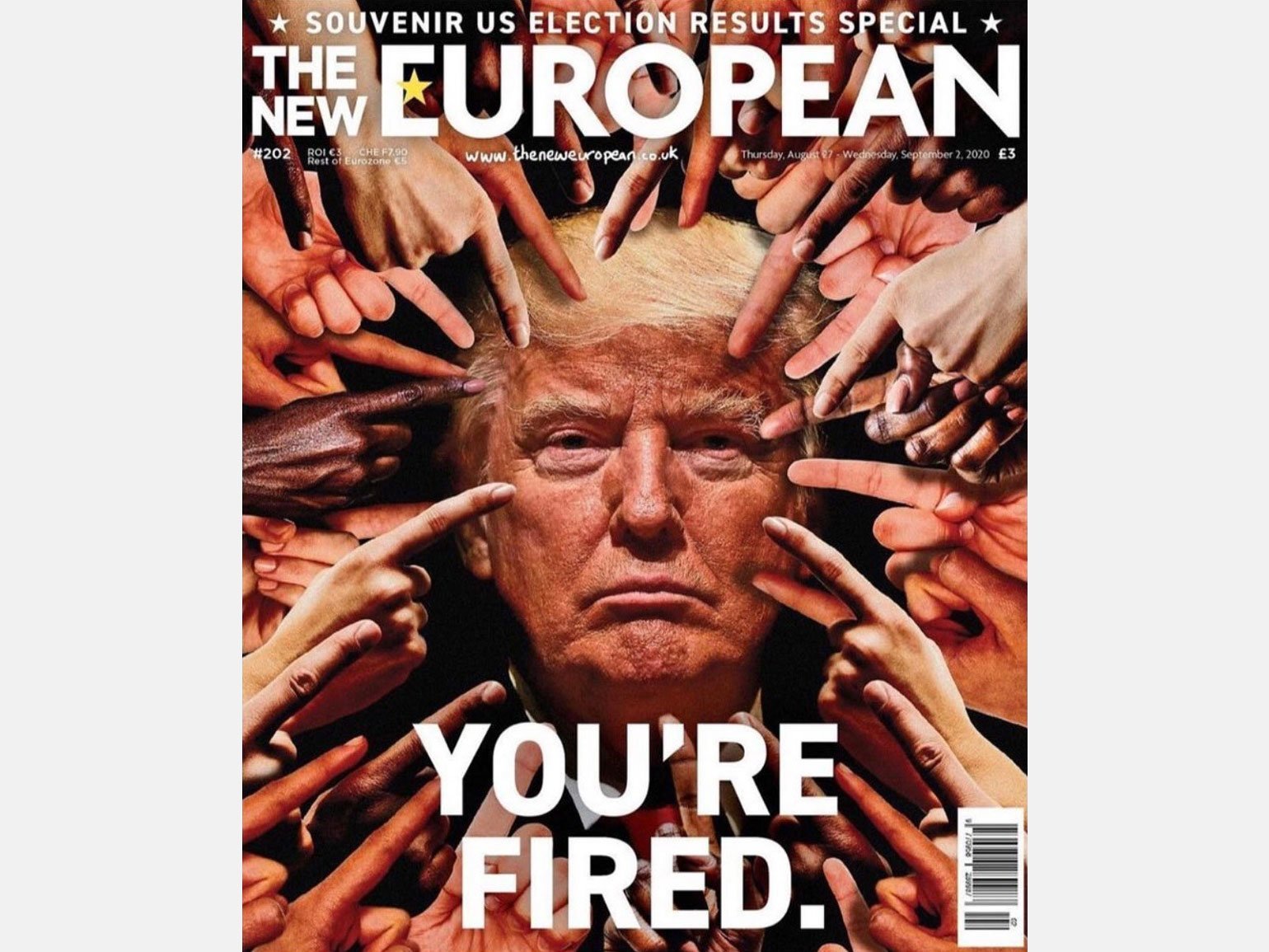 Эра Трампа — это ещё и огромное количество журнальных обложек, настолько фигура президента США и его деяния были резонансны. Думаю, мы ещё вернёмся к этому феномену. Пока же произвольная обложка из заключительного этапа пребывания Дональда у власти. Классический фотомонтаж и по исполнению, и по композиции — явление редкое для современной цифровой эпохи. Прекрасный и простой лозунг: «Ты уволен!» Тот случай, когда обложка по силе как революционный плакат.