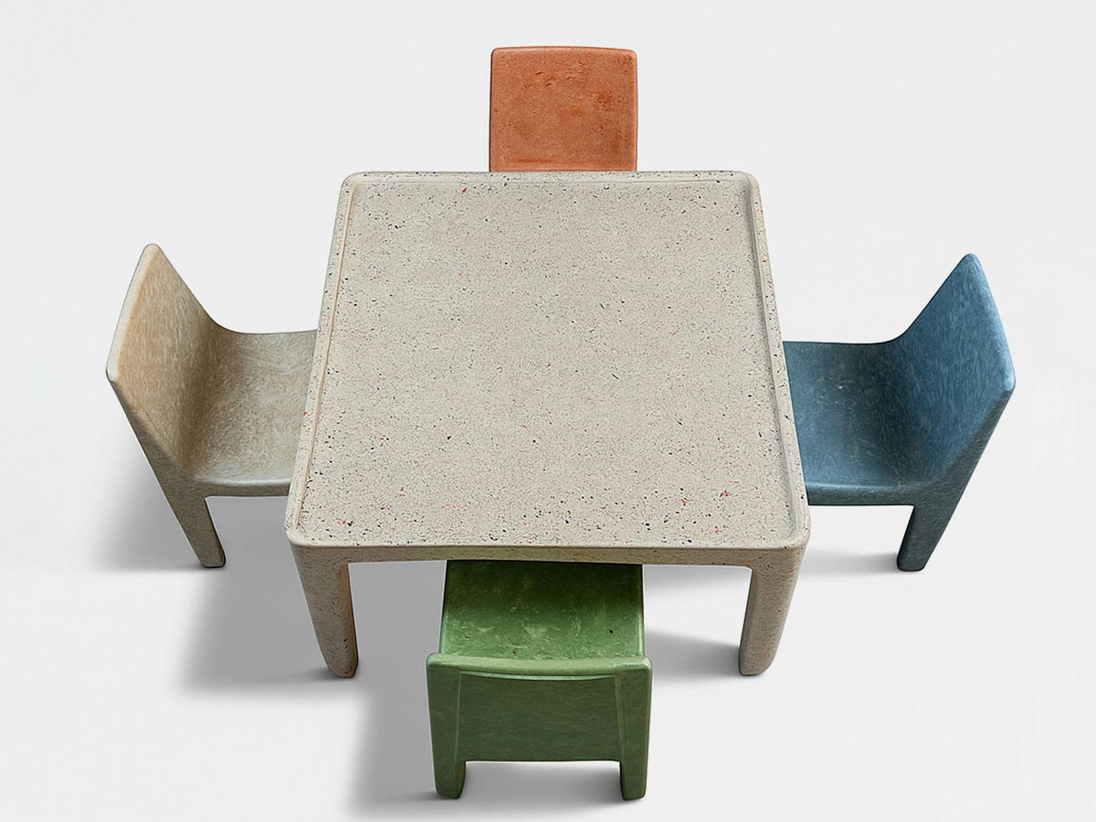 Связь по цвету — это, например, ресайкл-стул такого же цвета, что и «обычные», современные стулья на кухне.