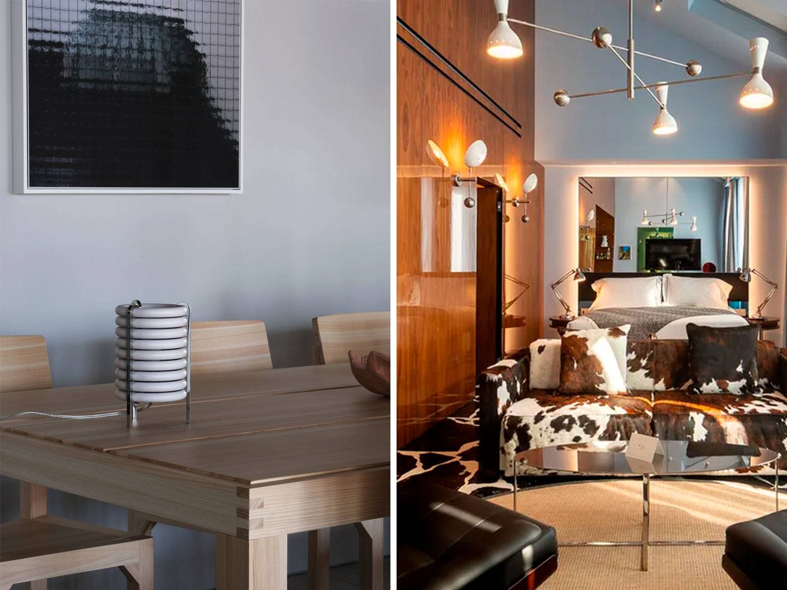 Связь по материалу — это, например, деревянный винтажный стул в композиции с деревянными современными стульями. То же и с металлом.