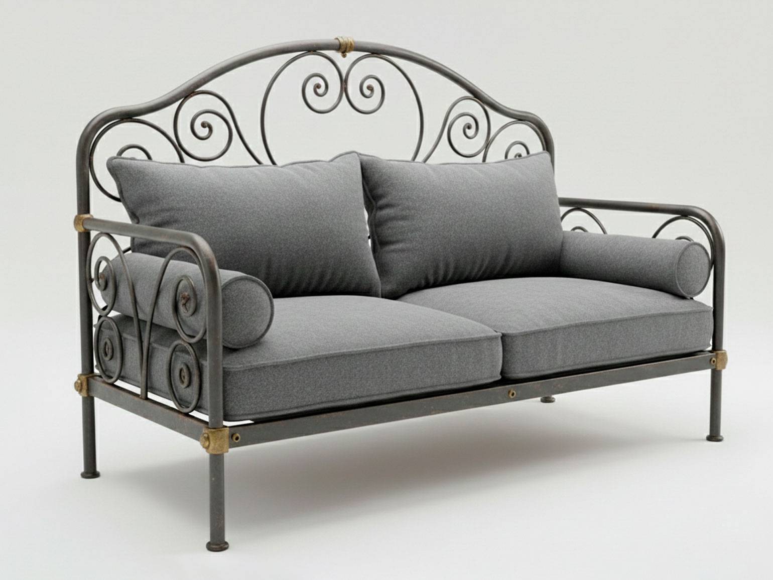 - Изящный диван-скамья из стальной кровати. Конструируется из передней и задней спинки, ножек и части рамы. Для соединения элементов лучше воспользоваться сваркой. При желании диван можно сделать мобильным — достаточно добавить ролики для мебели.