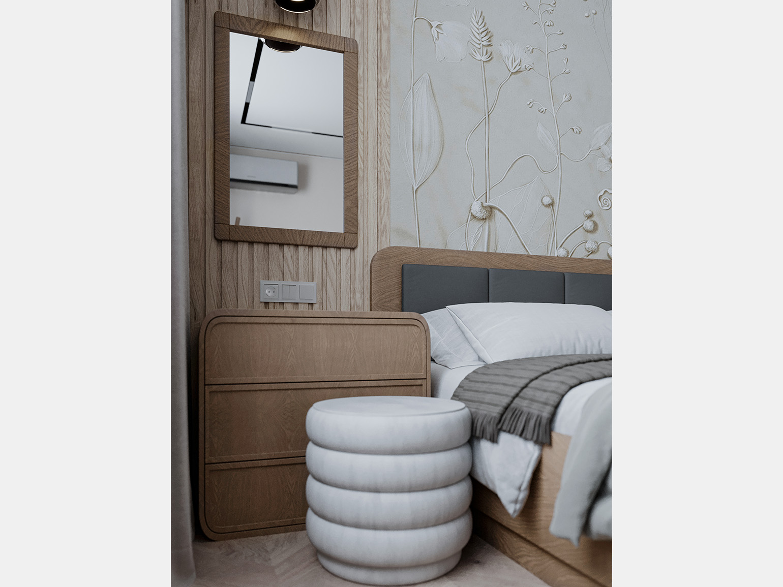 — Я подошла к ней так же, как и ко всем другим практическим заданиям, — ответственно и системно. Это был дизайн-проект квартиры для семейной пары с домашним питомцем. У меня была возможность выбрать близкий к своей эстетике стиль, и я остановилась на mid-century modern.