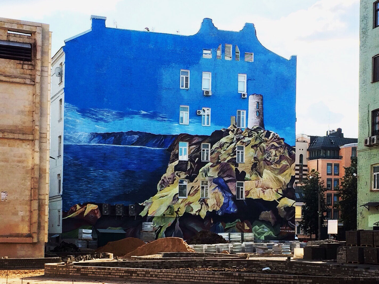 Нам дали разрешение на создание мурала. И вслед за первым проектом полетели заказы. Несколько лет мы активно рисовали, я даже получил лицензию промышленного альпиниста и реализовал мурал в десять этажей с верёвок.