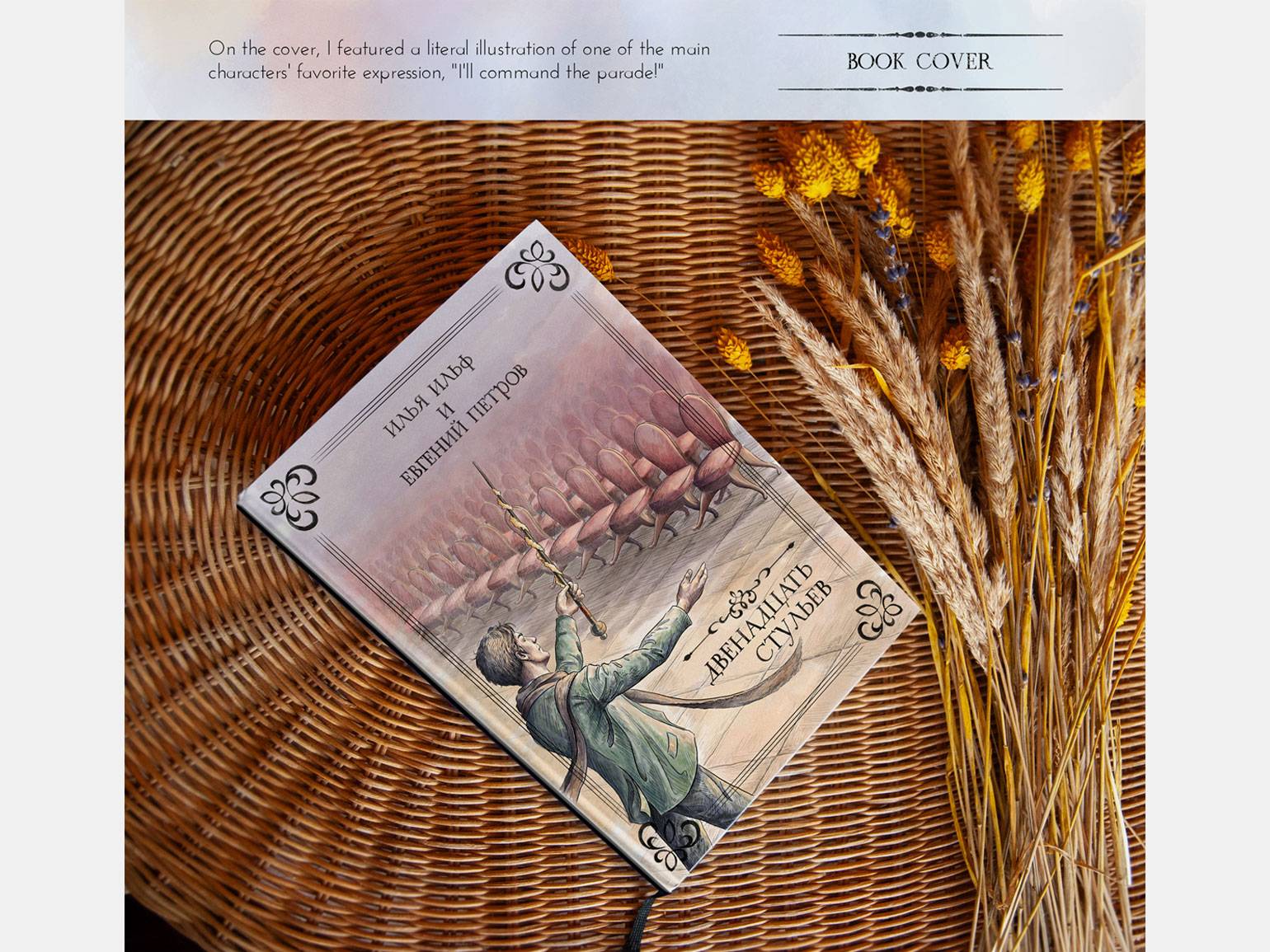 Дипломный проект для Skillbox — моя отдельная любовь. Я решила сделать полный дизайн, концепцию и иллюстрации для своей любимой книги «Двенадцать стульев».