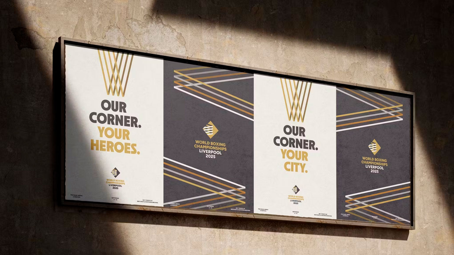 Федерация World Boxing обратилась к студии Continuous с задачей создать бренд, представляющий престижное мировое соревнование и одновременно отражающий характер принимающего города. Студия как раз тоже из Ливерпуля, что помогло ей найти «культурную основу бренда и его центральное послание — „Добро пожаловать в наш угол“».