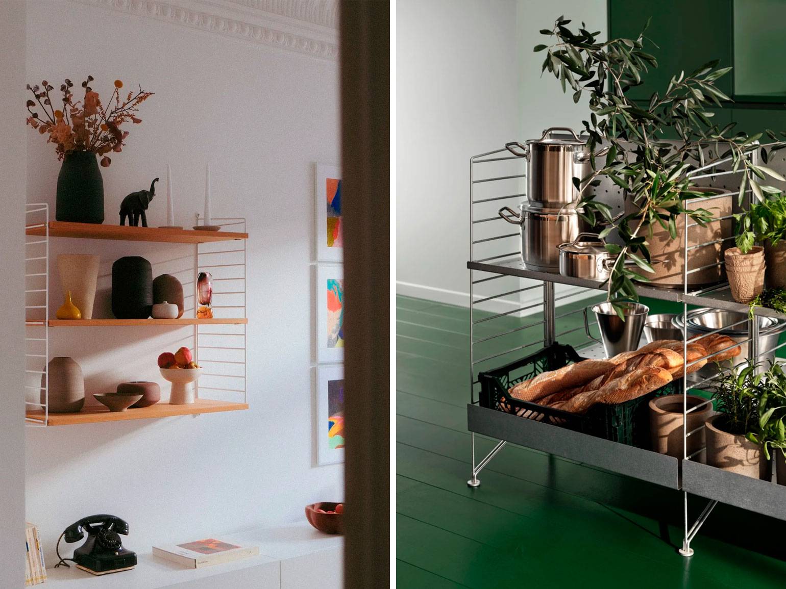 Пример — система хранения String System. В 2025 вышла в новых цветах, добавились модули для кухни/ванной.