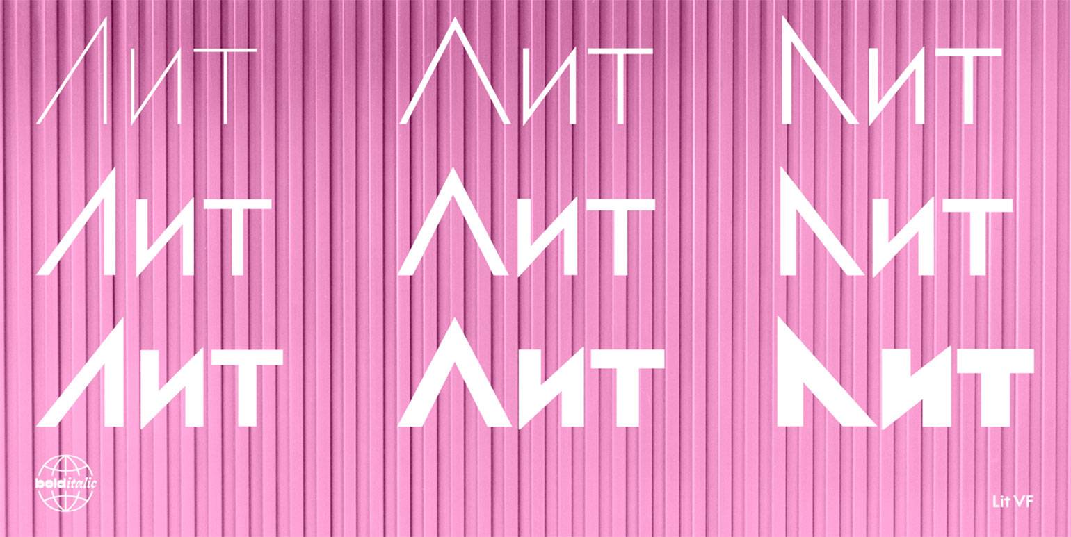 Lit от Bolditalic, в котором намеренно разная ширина букв создаёт неожиданный ритм и игривую нотку ар-деко. Nox от ESH Gruppa — шрифт для отеля, где геометричность превращается в акциденцию за счёт соединения букв одной линией, как отсылка к арабской вязи.