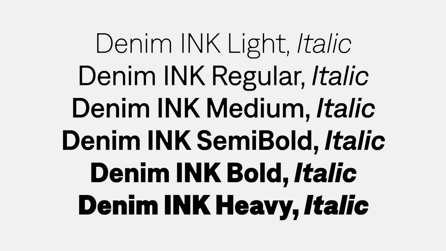 Denim от Display Type Foundry, гротеск с чуть приквадраченными овалами, но главная фишка начертания INK — еле заметные заплывы внутри букв, которые усиливают общий технический характер шрифта. MM Sign от Mockup Masion создаёт внутри букв физический эффект потрескавшейся на солнце виниловой плёнки.