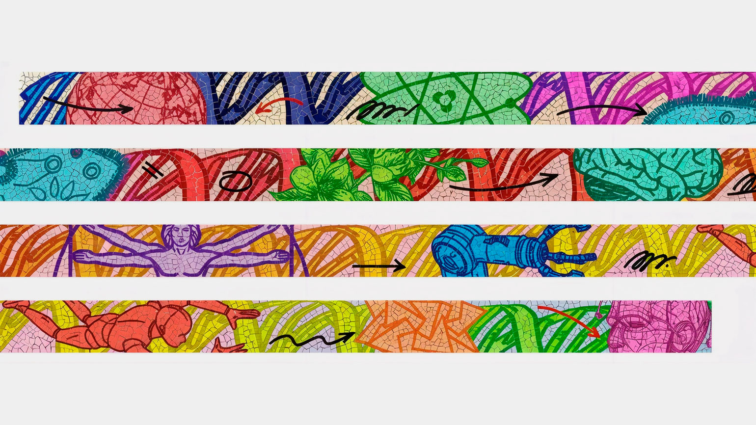 По словам художника, панно задумано как визуальный рассказ, который зритель как бы читает по мере движения вдоль стены. При этом прохожий становится не только наблюдателем, но и участником изображённой истории.