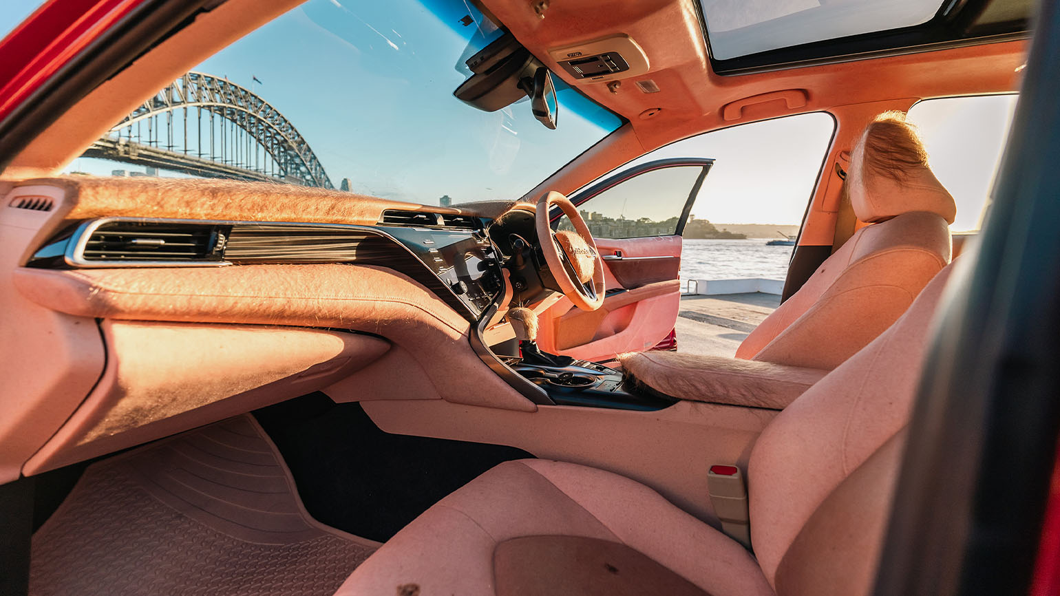 Интерьер Sunburnt Car выполнен из силикона с фотохромными пигментами — это специальные красители, меняющие цвет под воздействием ультрафиолета. Поверхность дополнена гиперреалистичными деталями — волосками, родинками и веснушками, некоторые из которых выглядят подозрительно и своим видом намекают на потенциальные кожные заболевания. Такой уровень детализации задуман как способ вызвать у зрителя почти физический дискомфорт и тем самым усилить эффект от сообщения.