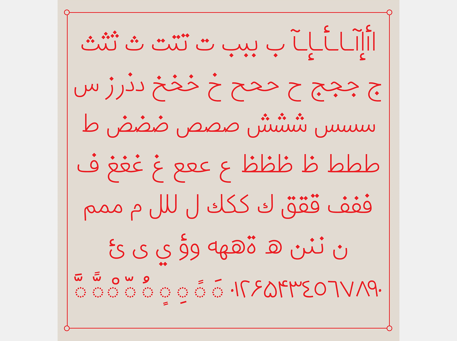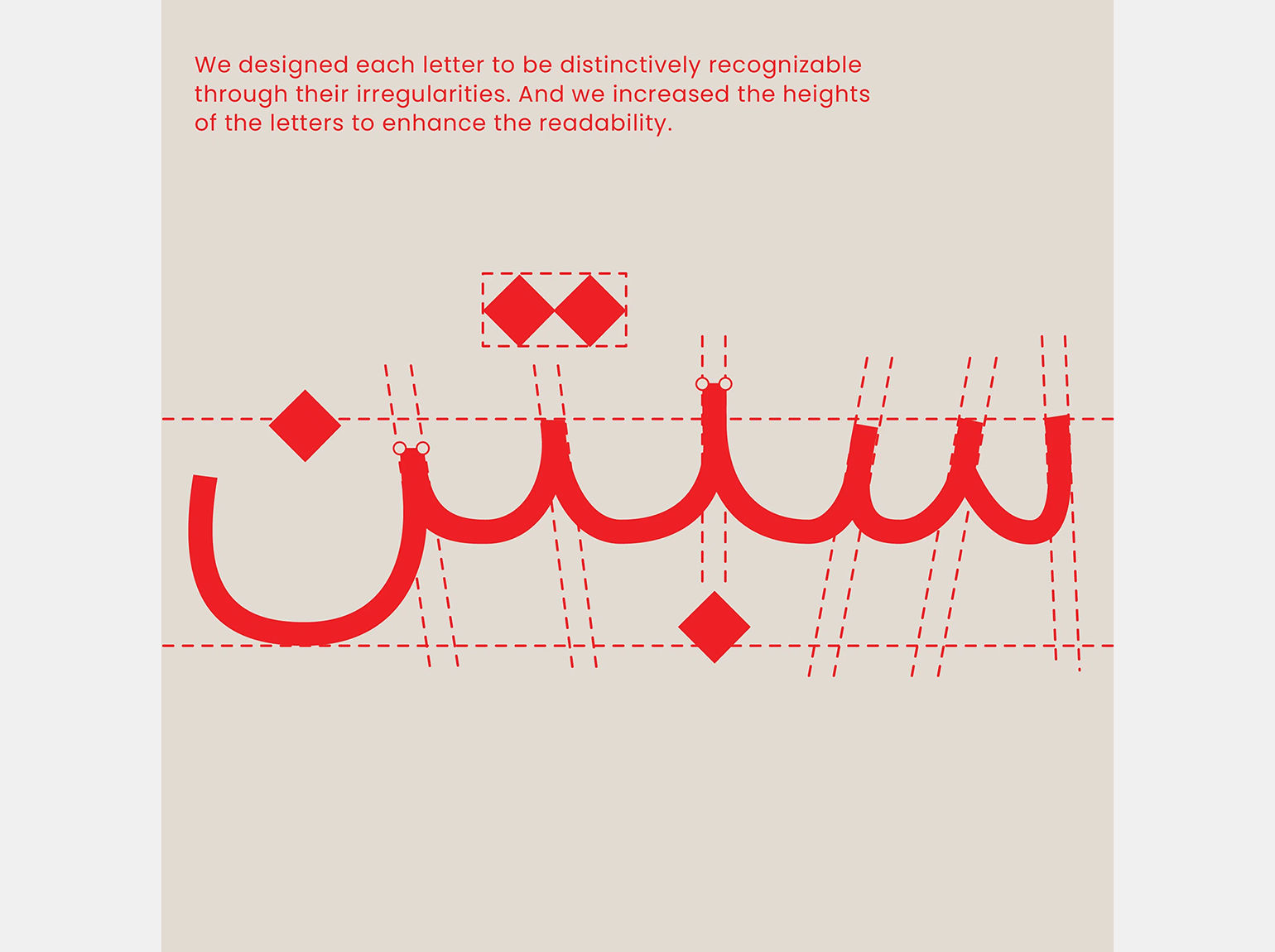 Команда также использовала другие отличительные аспекты арабской типографики, такие как нукты (точки) и ташкили (знаки), сделав их больше и добавив неровности в форме и размере. Это тоже делало их более различимыми. Каждый глиф таким образом стал узнаваемым благодаря своим неровностям, сообщает издание It’s Nice That.