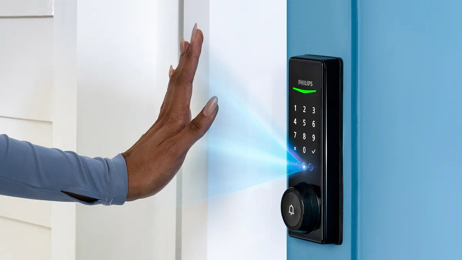 Компания Philips представила умный дверной замок, который не требует ключа или кода, — он отпирается с помощью ладони. Алгоритм распознаёт уникальный рисунок вен человека. Программа работает через Wi-Fi.