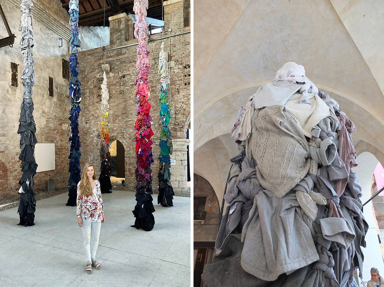 Это исследование вылилось в многолоетний проект «Вещизм». Я делала инсталляции из ненужной одежды в торговых центрах, на экофестивалях, в разных галереях. В 2021 году я выиграла итальянскую премию Arte Laguna, итогом которой стала моя самая большая работа из одежды в Arsenalle Nord в Венеции.