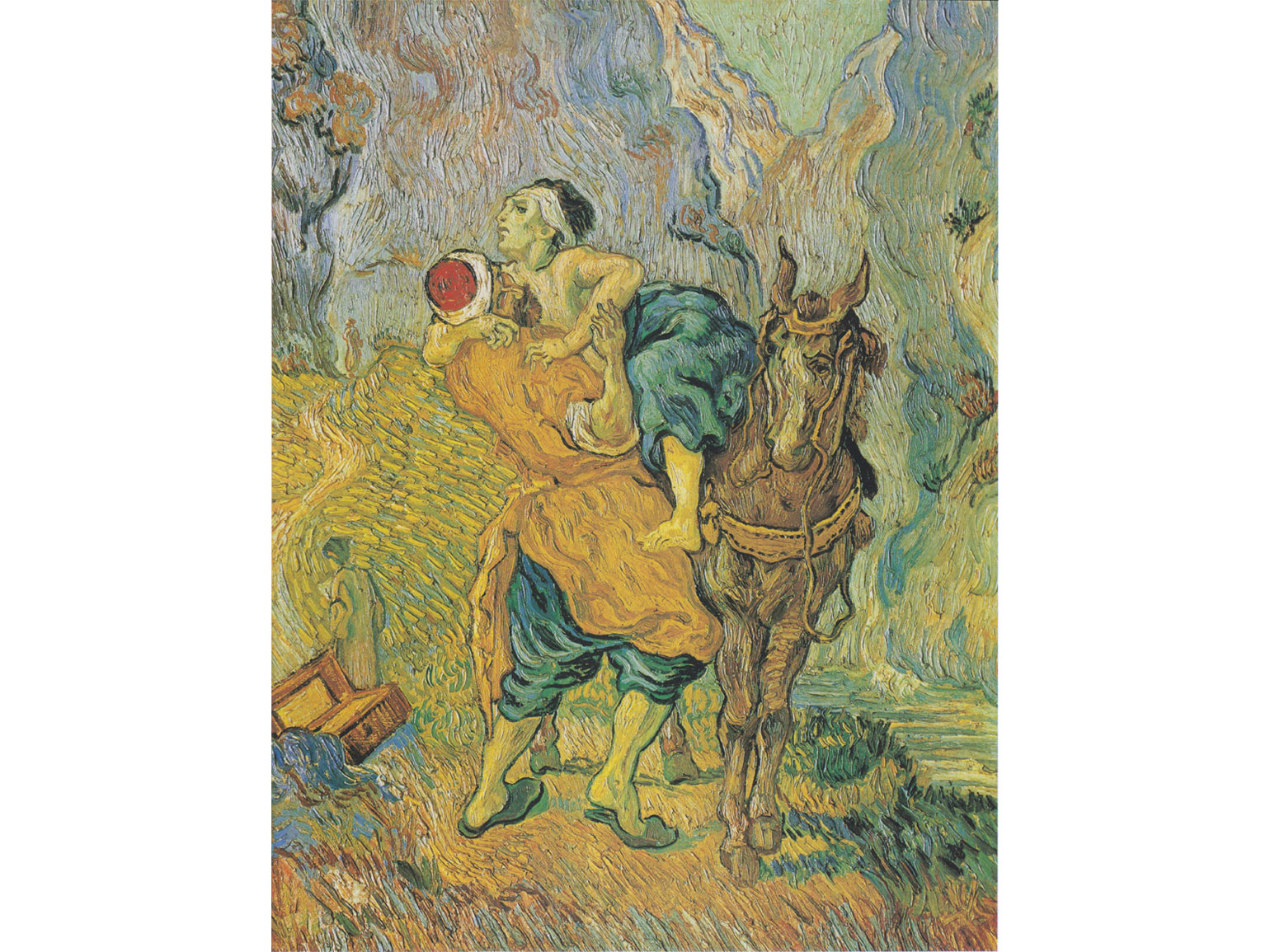 В Сен-Реми Ван Гог вновь стал исследовать реализм Жана-Франсуа Милле. Писал синим на жёлтом поле сборщиков урожая: жнецов с серпом и косой, женщину, что вяжет снопы, молотильщика и резчицу соломы.