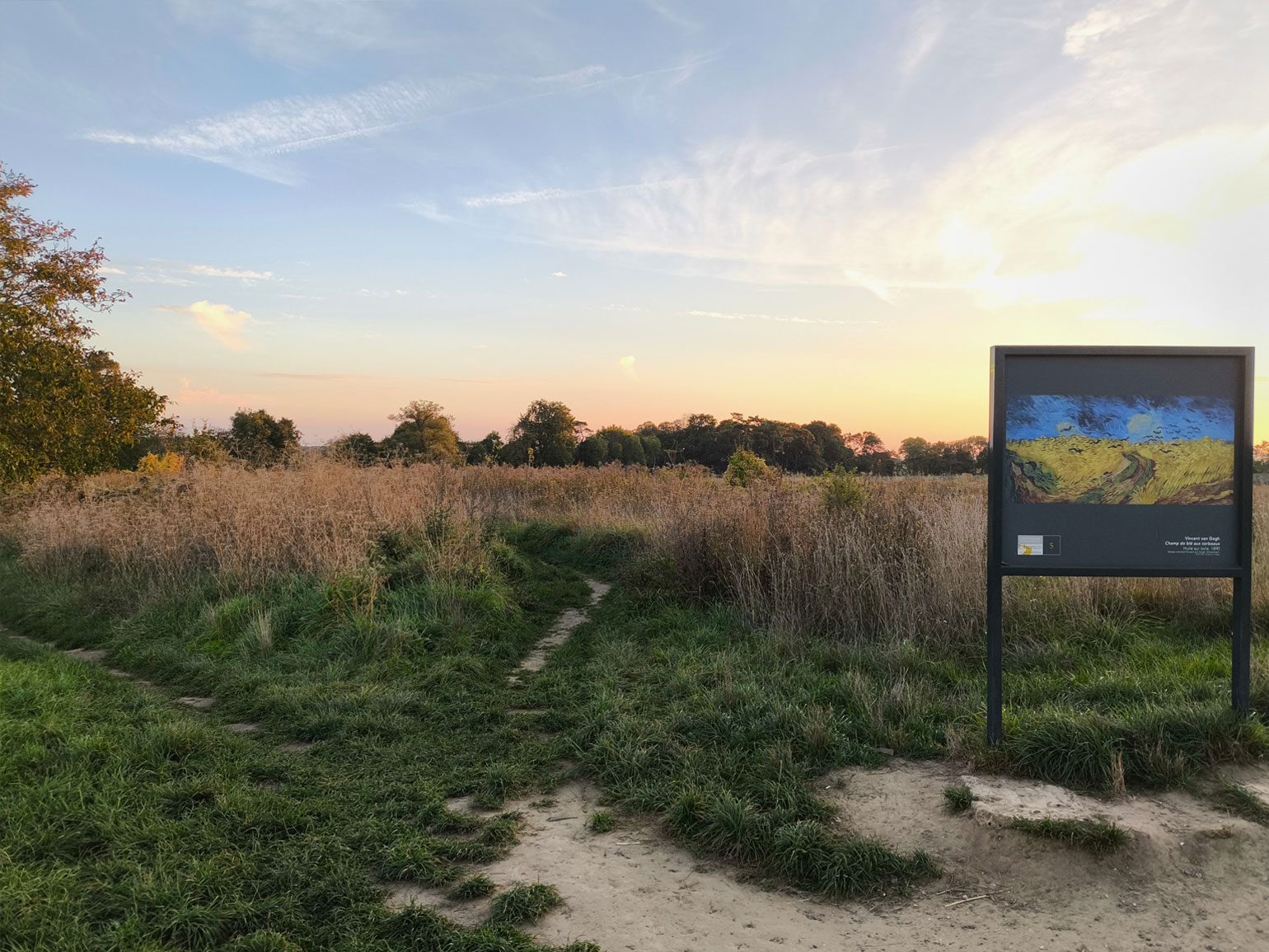 В паре сотен метров от скромного кладбища — тот самый уголок поля с разветвляющимися тропинками, который стал мотивом одной из последних картин мастера.