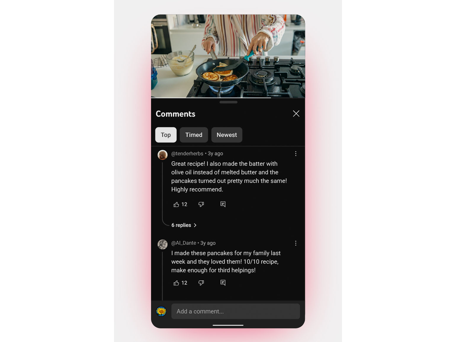 Теперь слева отображаются логотип канала и кнопки «Подписаться» и «Описание», справа — элементы для настройки видео. В плеер добавили новые визуальные эффекты. При двойном тапе для перемотки появилась обновлённая анимация, а при нажатии лайка — тематические эффекты, которые зависят от контента. Например, если лайкнуть музыкальный клип, на экране появляются ноты.
