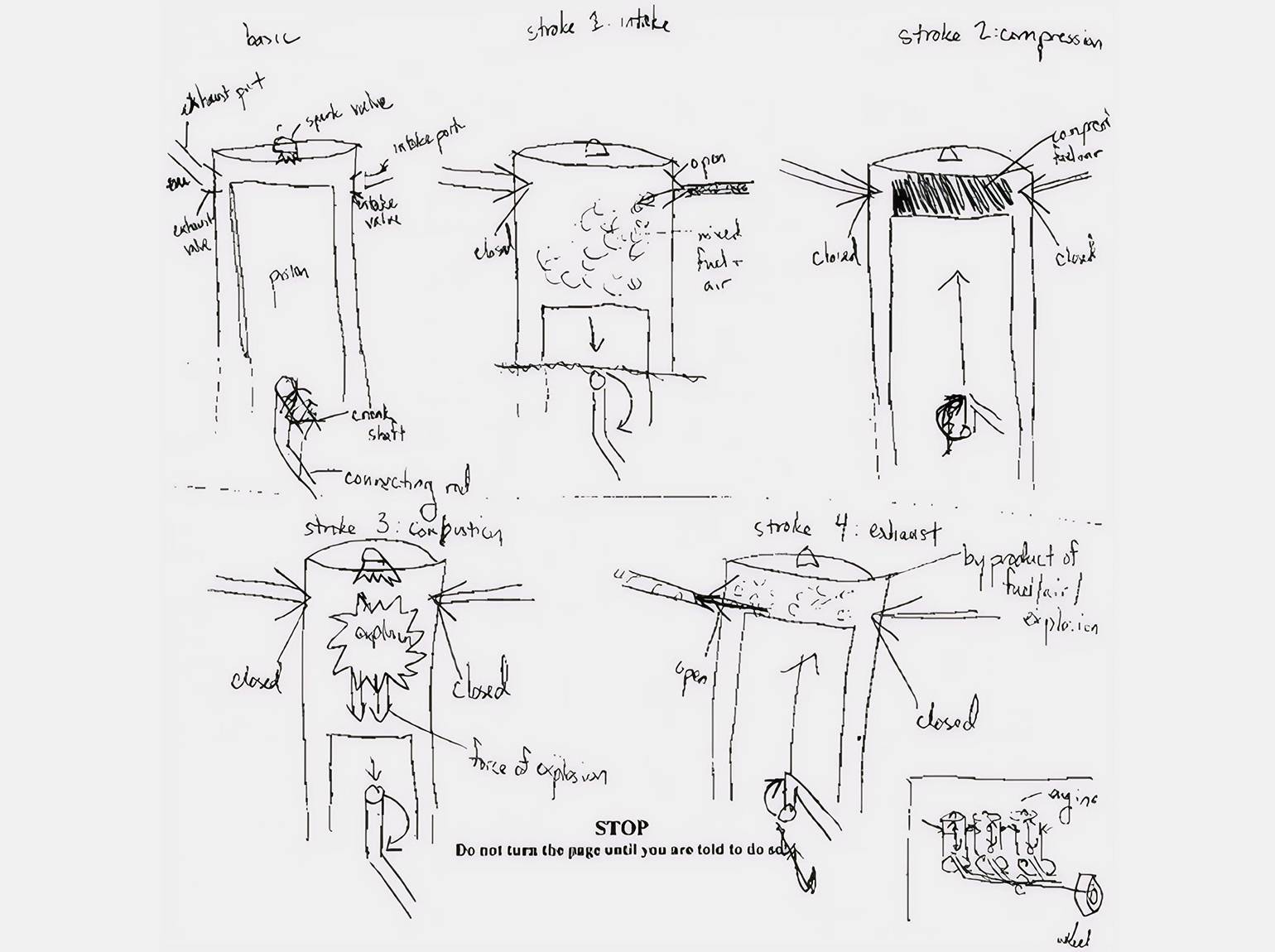 Оказалось, что зрители, которым досталось второе видео, гораздо лучше поняли и смогли объяснить главное — как работает четырёхтактный двигатель. Они чуть хуже ответили на вопросы по элементам его устройства в тесте, чем группа с первым видео, но их схемы и объяснения были лучше со всех точек зрения — более верными, полными и доходчивыми.
