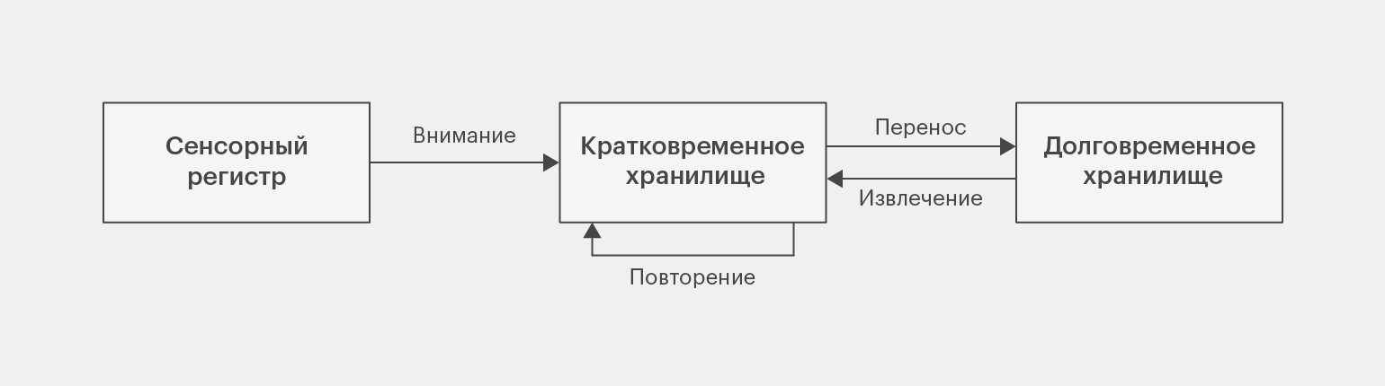 Одну из самых проработанных и распространённых моделей памяти своего времени представили психологи Ричард Аткинсон и Ричард Шиффрин в 1968 году. Они предположили, что память состоит из трёх постоянных компонентов: