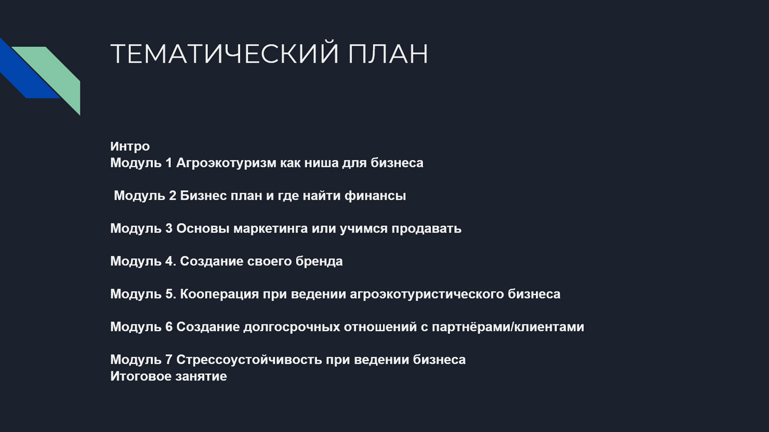 Для курсовой работы я выбрала близкую мне тему и разработала программу для предпринимателей, которые хотят организовать в своем регионе агротуризм: что делать, чему учиться, какие исследования провести, чтобы запустить бизнес. Защита курсовой прошла отлично, я отточила свои навыки и получила от комиссии много позитивной энергии.
