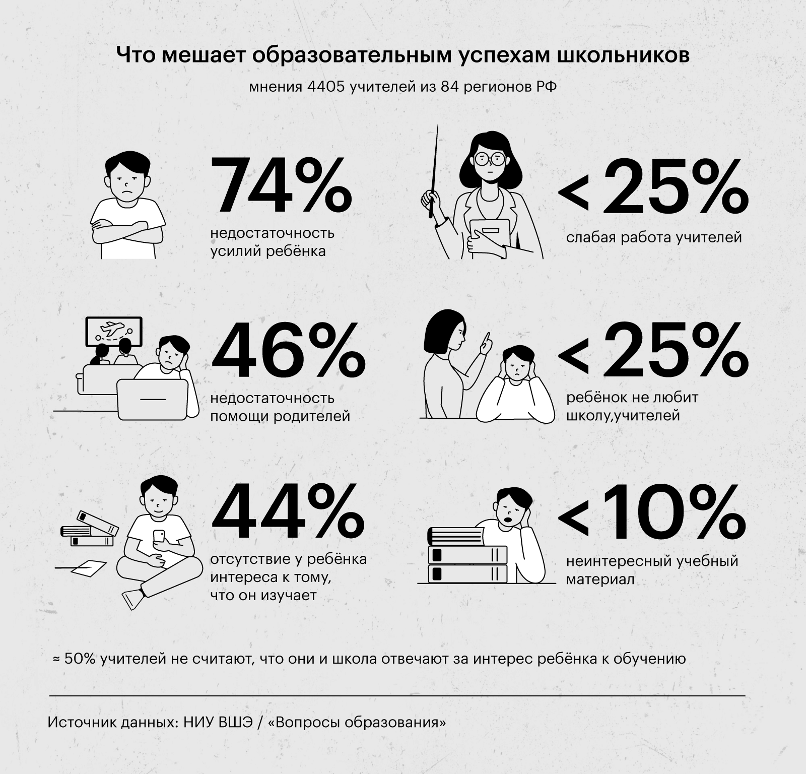 Почему это важно? Потому что вряд ли кто-то будет прилагать усилия к тому, в силу чего не верит. По убеждению большинства педагогов, школьные факторы не очень помогают детям преодолевать неблагоприятные условия среды и достигать учебного успеха. Вероятно, это одна из причин, по которым трудно реформировать содержание образования, считают исследователи. Учителя попросту не видят причин что-то менять.