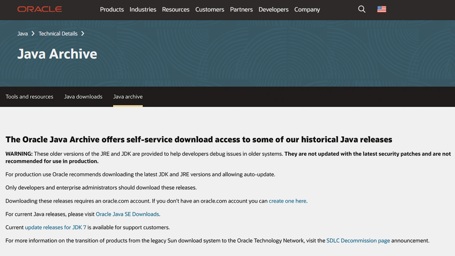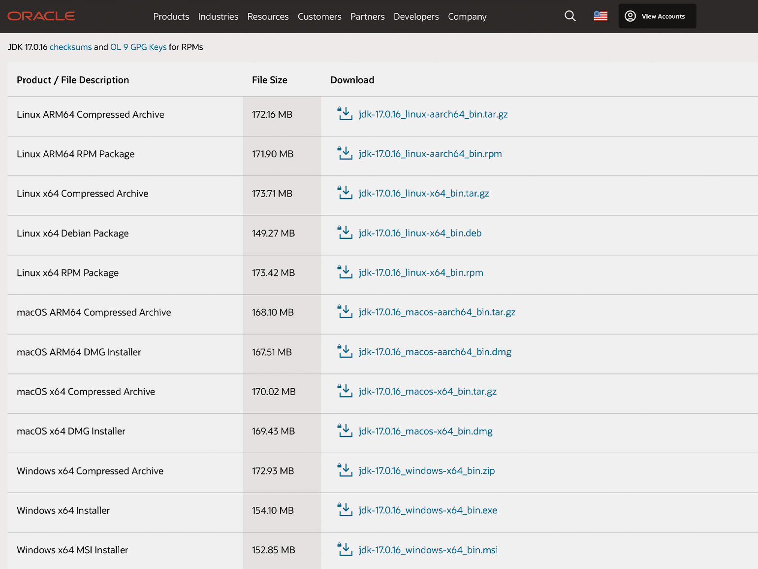 Мы будем создавать моды для Java-версии Minecraft, поэтому нужно установить Java Development Kit (JDK) — набор инструментов для работы с кодом на Java. Для этого перейдите на официальный сайт Oracle, откройте раздел Java Archive и скачайте JDK версии 17 или выше: